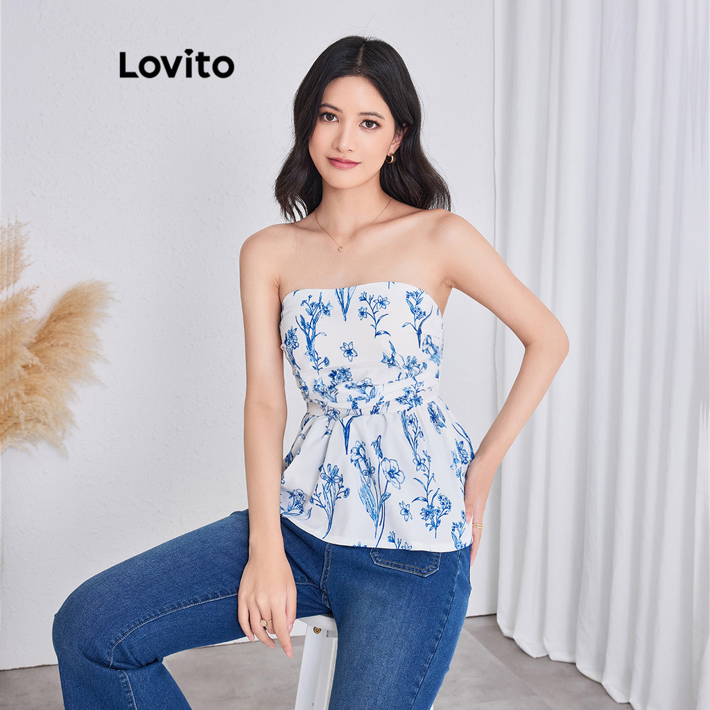 Lovito Boho Top Ditsy Floral Plissado Regata De Verão Para Mulheres L95ED089