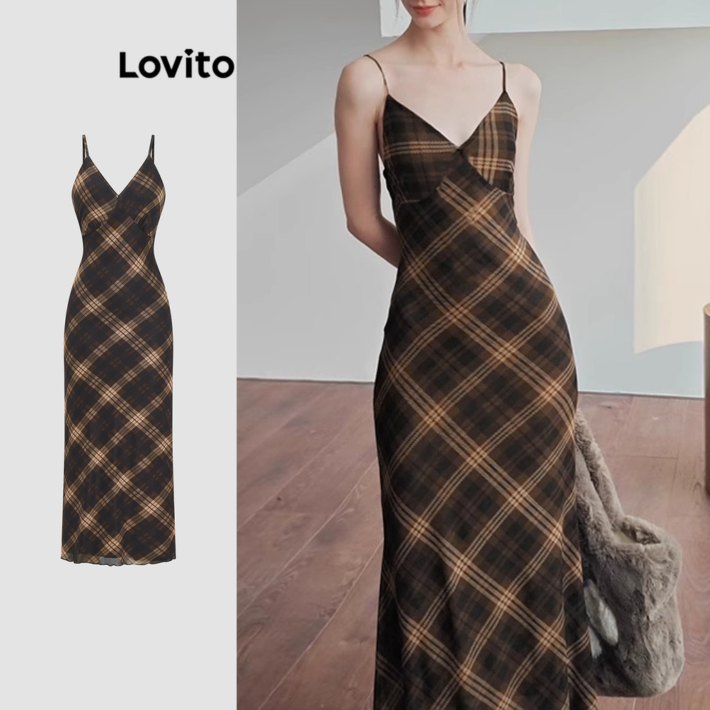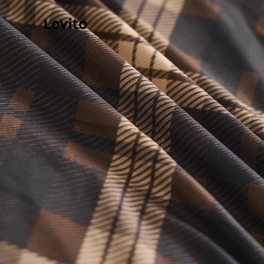 Lovito Vestido casual xadrez estrutura linha para mulheres L122AD011