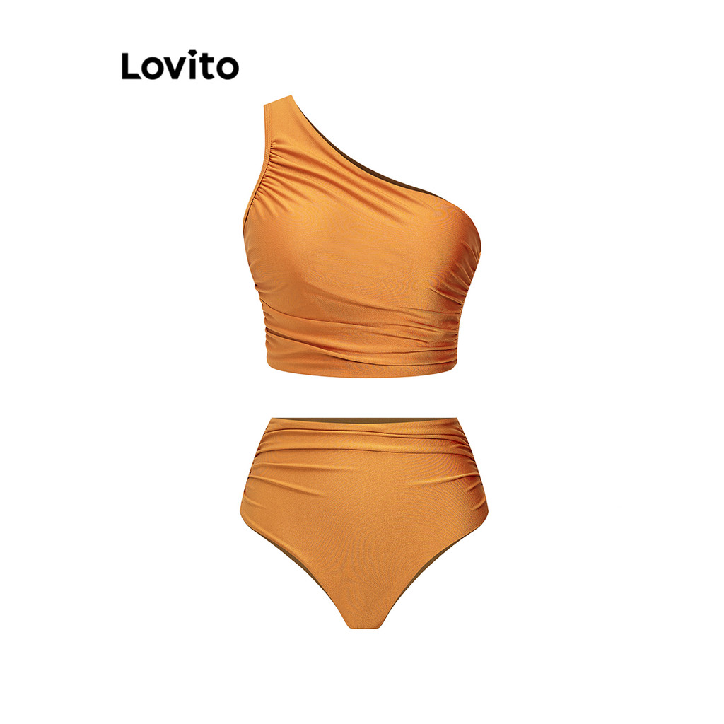 (Trendy) Lovito Conjuntos De Biquíni Casuais Conjuntos De Biquíni Assimétricos Lisos Para Mulheres LBL16822