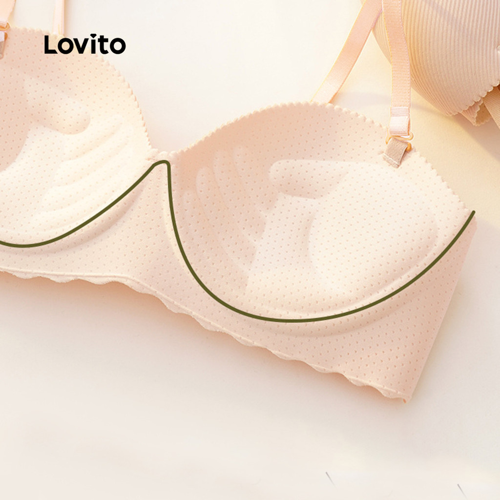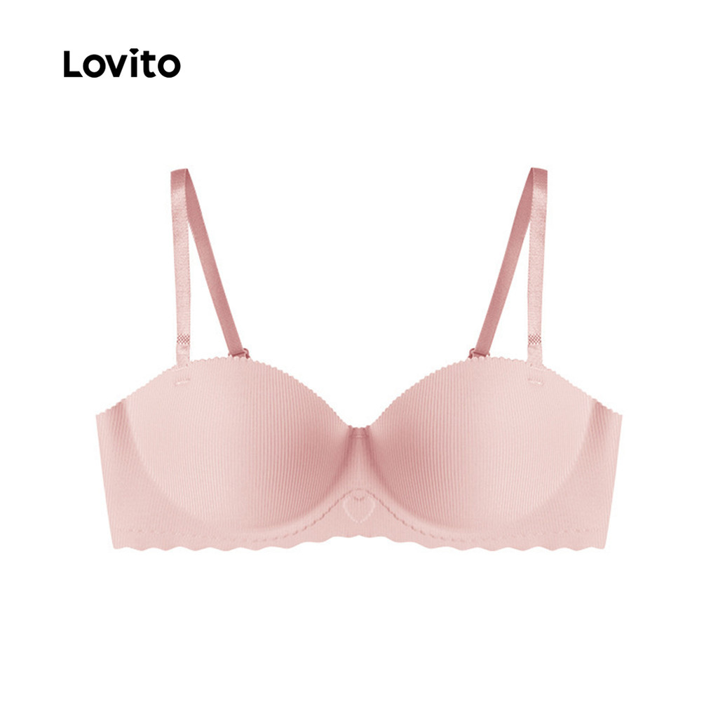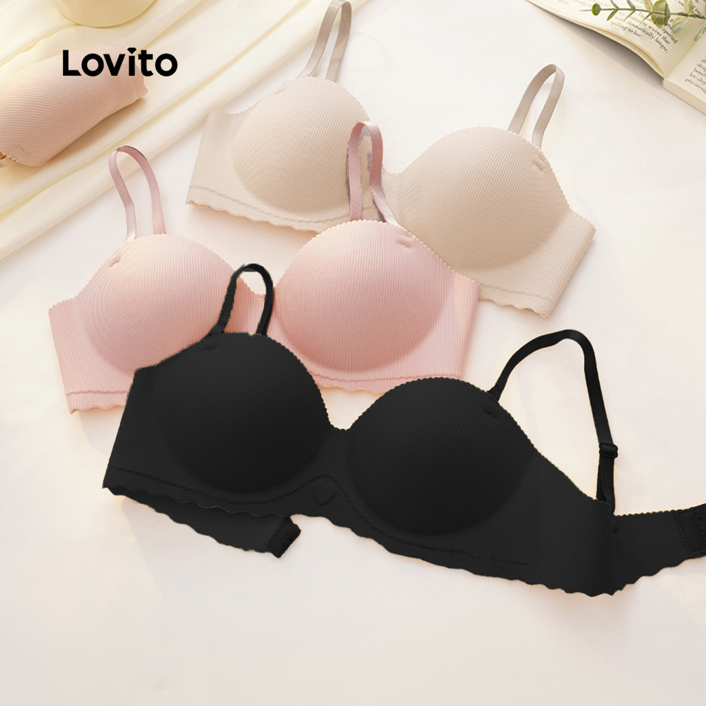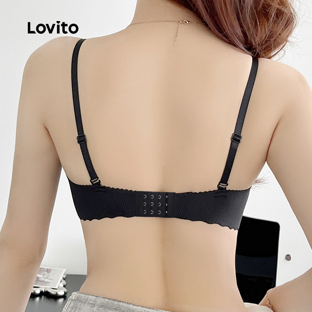 Lovito Sutiã Sexy Bralette Antialérgico Sem Costura Sem Fio Push-up Preto para Mulheres LNE117245