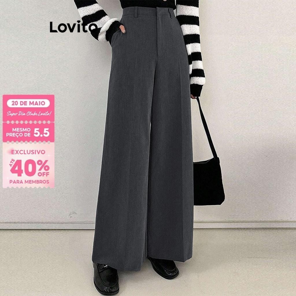 Lovito Calça Casual Calça Básica Lisa Para Mulheres LAD106654