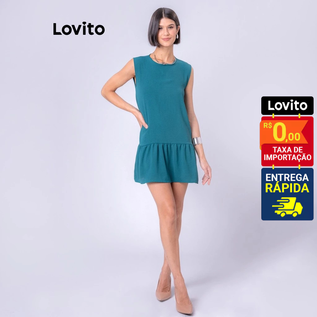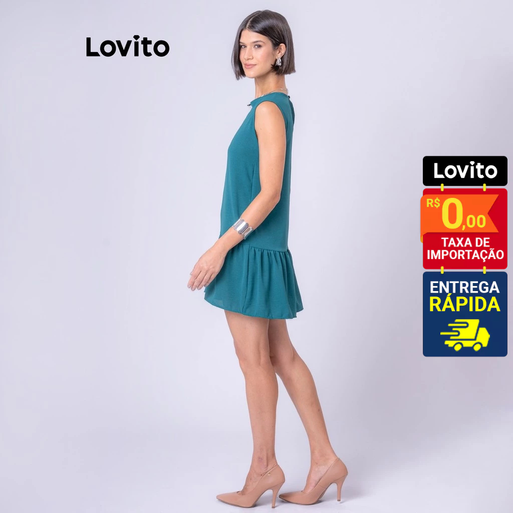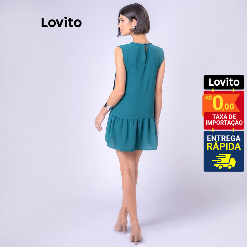 Lovito Vestido Curto Sem Mangas com Babado na Barra Basico Feminino LB107BRL136