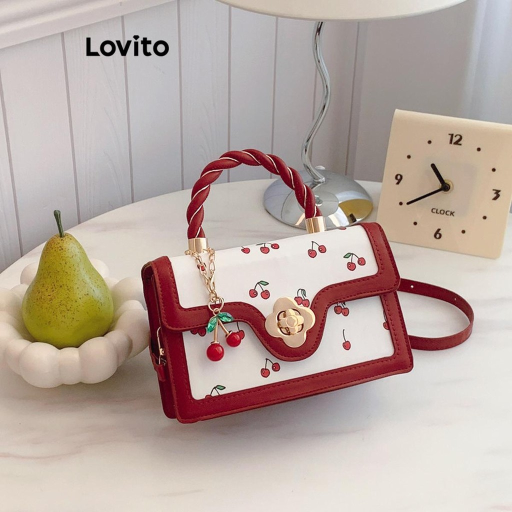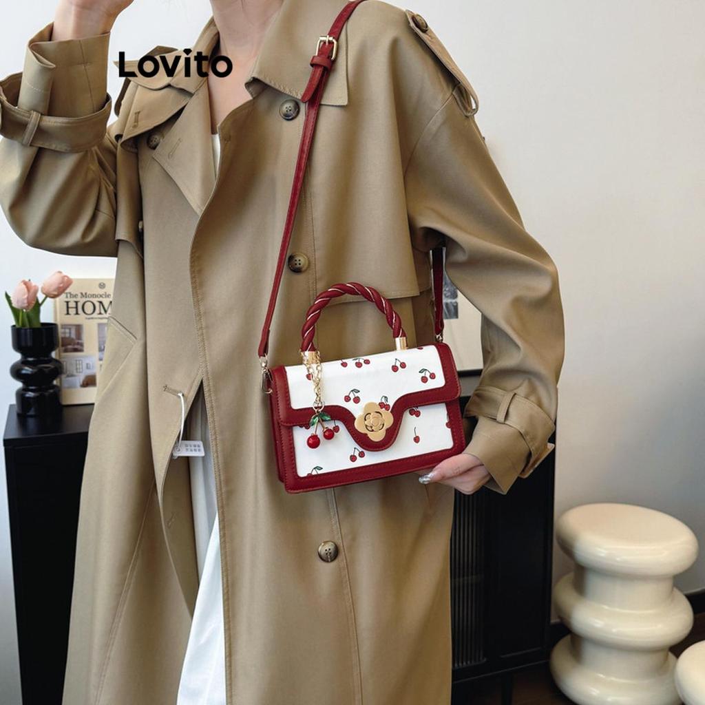 Lovito Bolsa quadrada com estampa portátil torcida para mulheres LFA68233