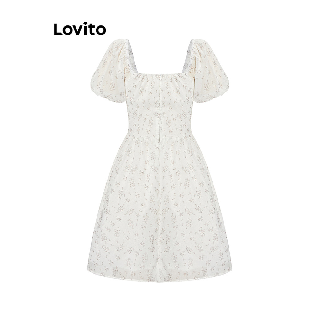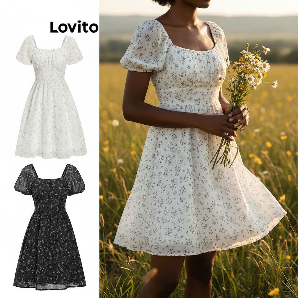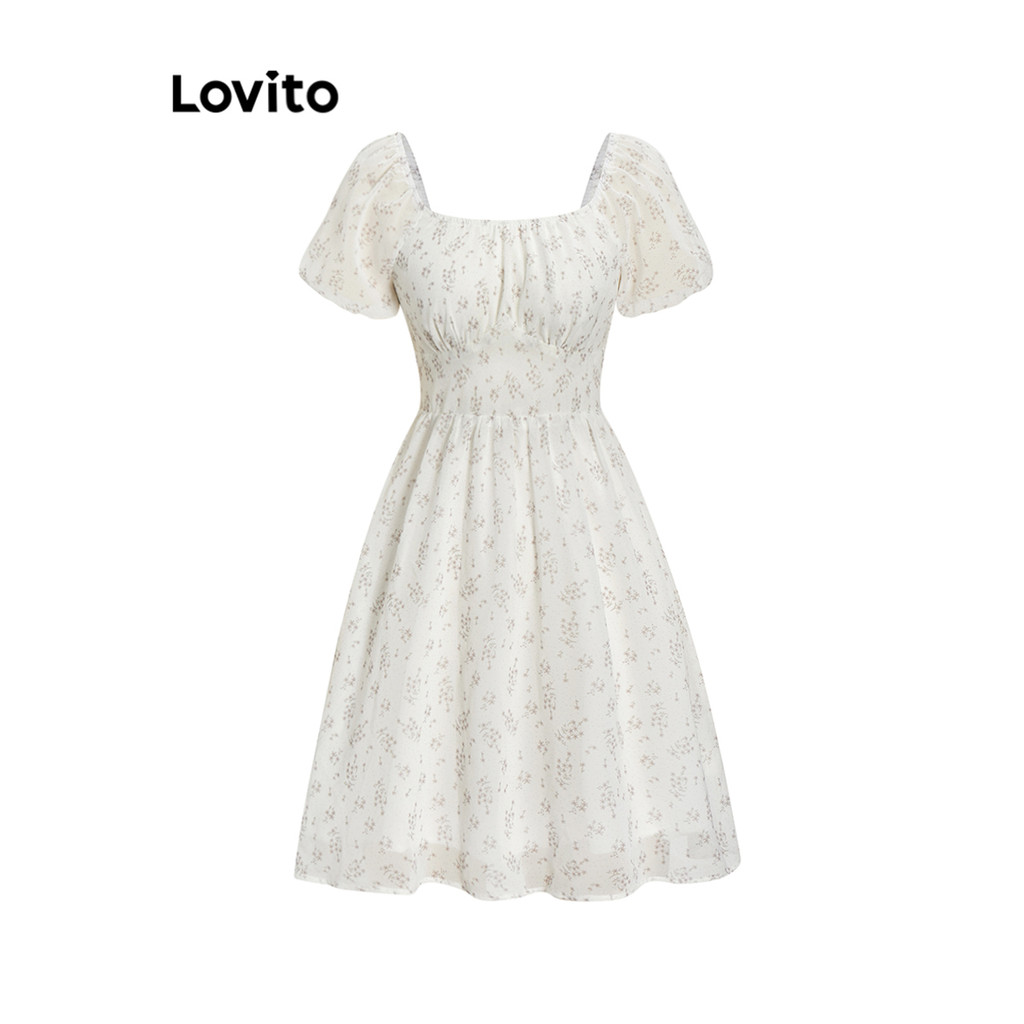 (Trendy2) Lovito Vestido Casual Ditsy Floral Básico Vestido De Verão/Primavera Para Mulheres L65ED128 (damasco)