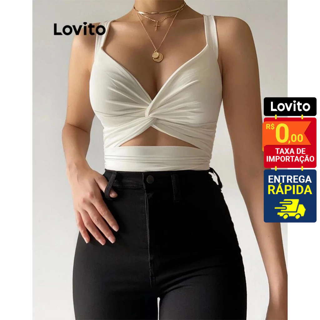Lovito Top Regata Casual Feminina Lisa com Recorte frontal e detalhe no Busto LNL38051