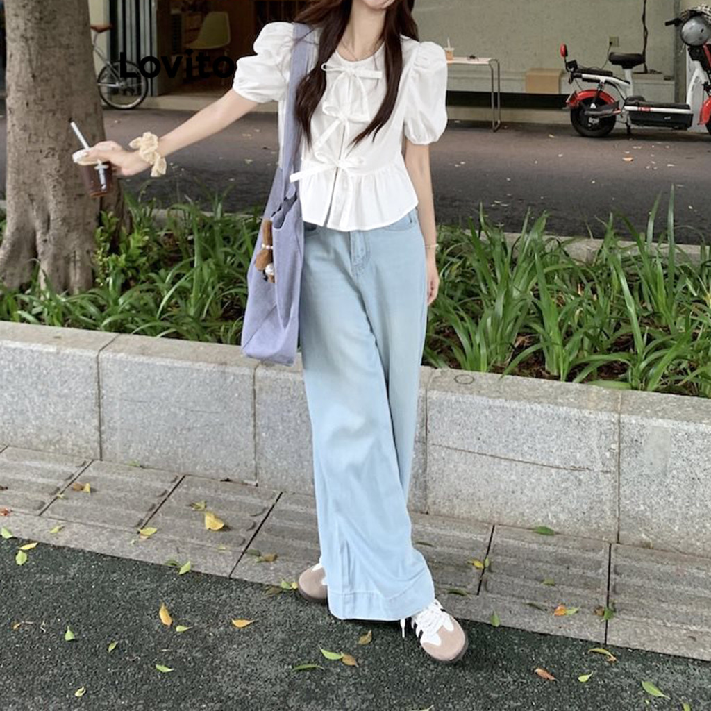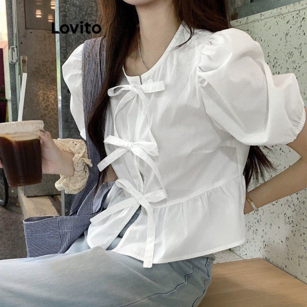 Lovito Blusa Casual Lisa Com Cadarço Blusa De Verão Para Mulheres L104ED294