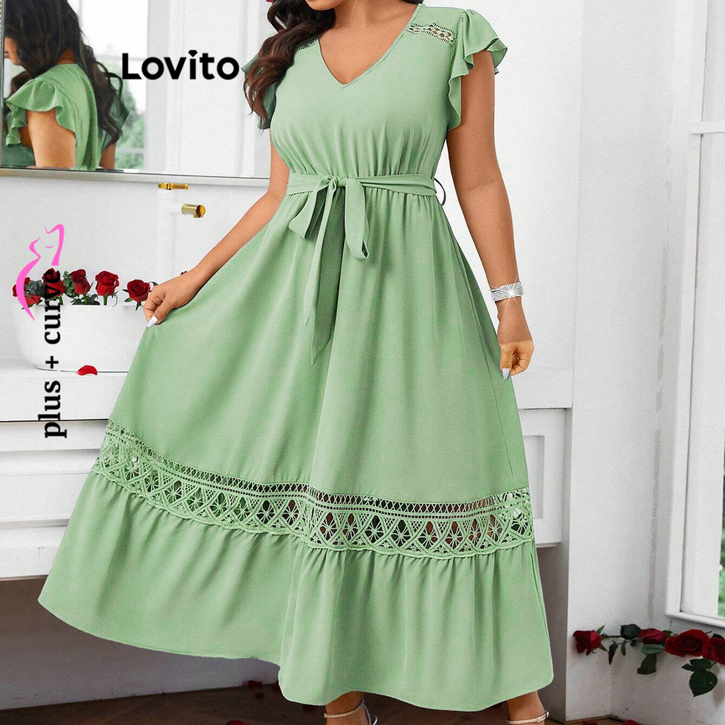 Lovito Vestido Elegante Curva Plus Size Com Babados De Renda Vestido De Verão/Primavera Para Mulheres LBL20536