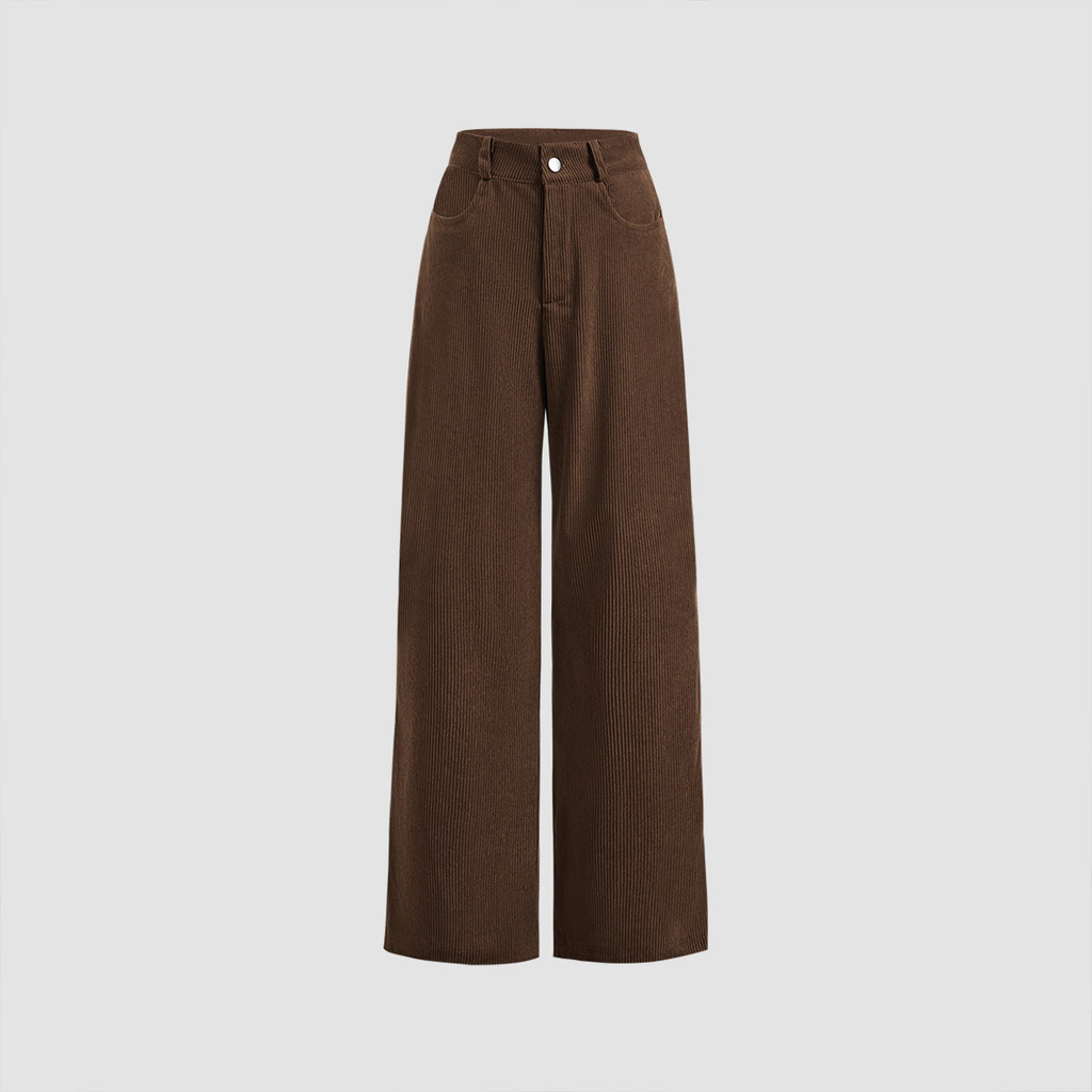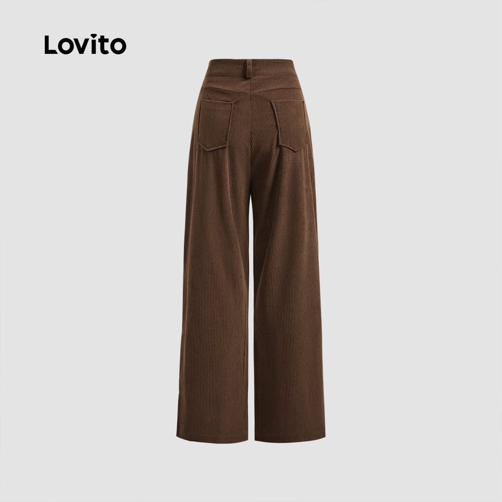 Lovito Calça Casual Com Zíper E Bolso De Veludo Cotelê Para Mulheres LBL23492