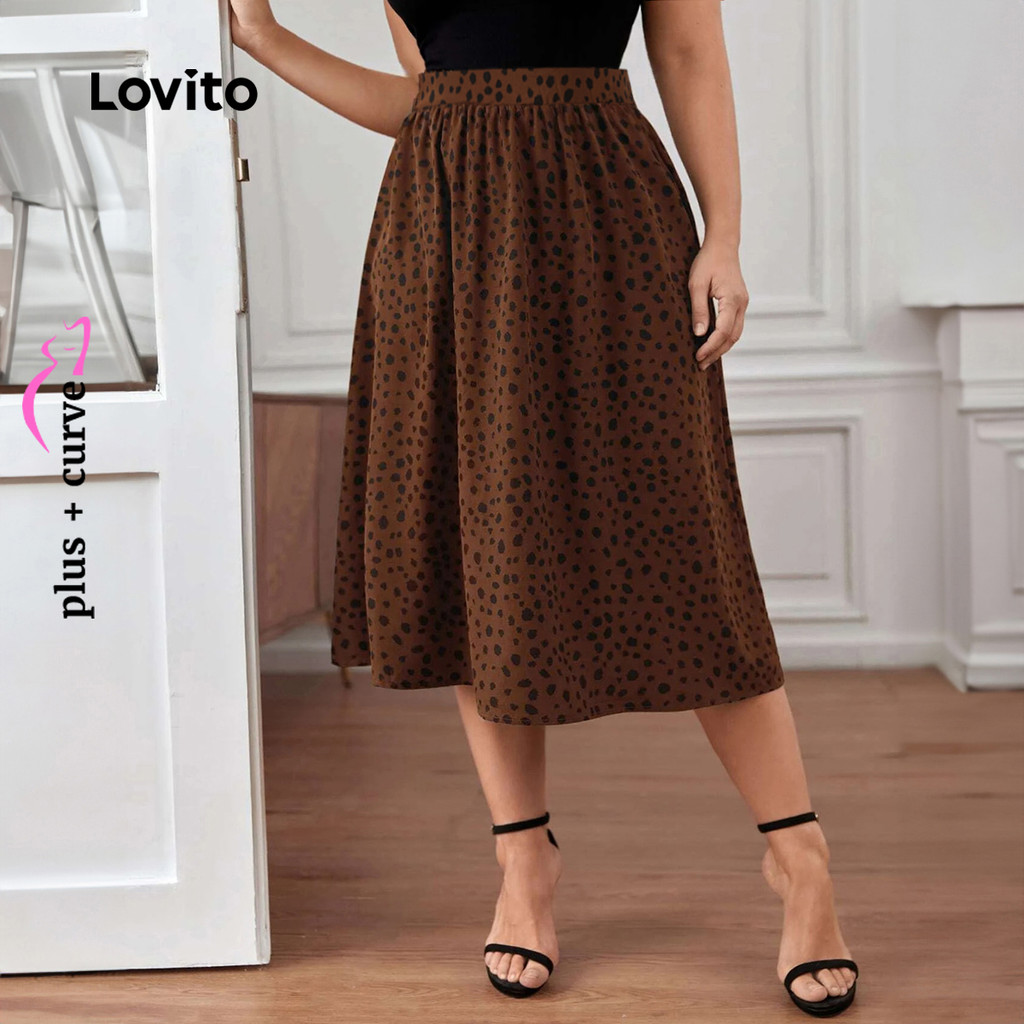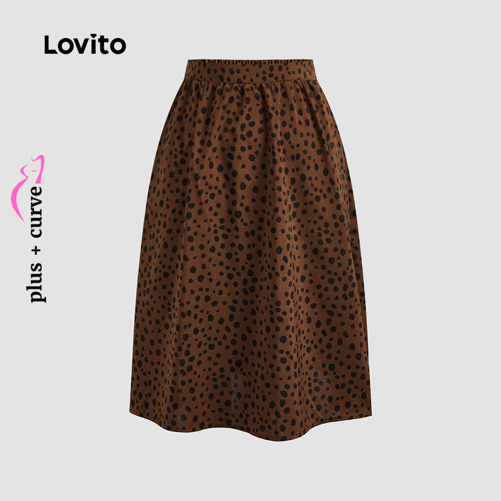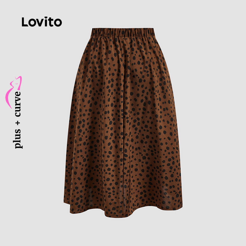 Lovito Saia Plus Size Curva Feminina Elegante com Estampa de Leopardo e Babados LBL22335