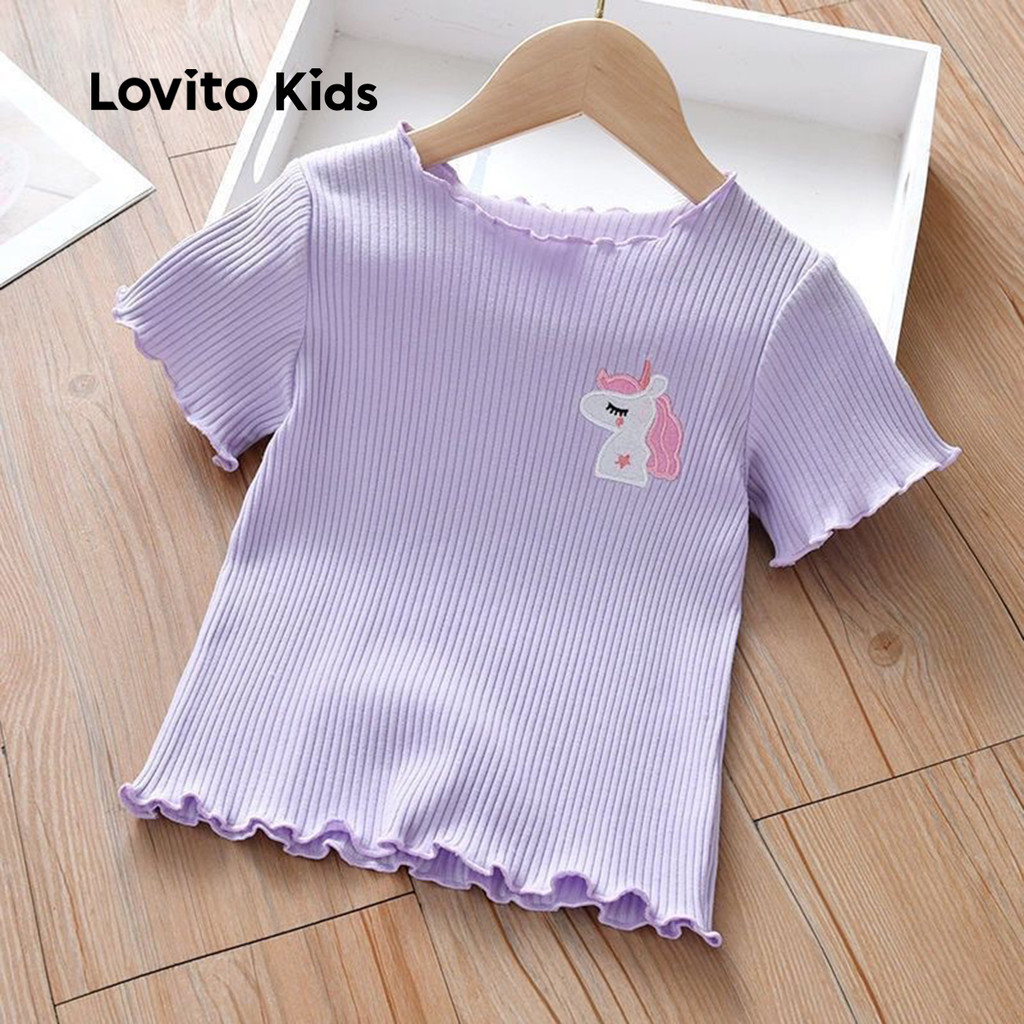 Lovito Kids Camiseta Fofa para Menina Primavera/verão Camiseta roxa LNL119356