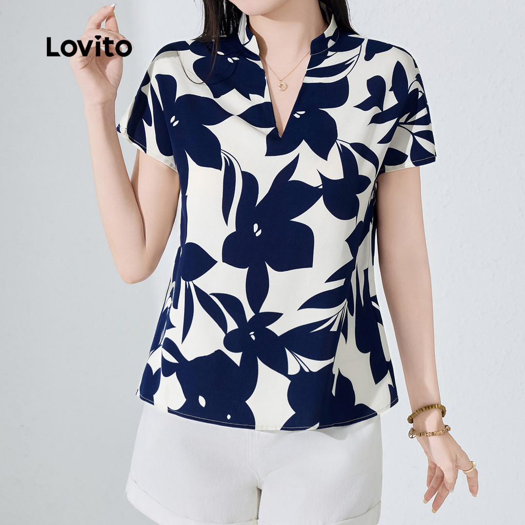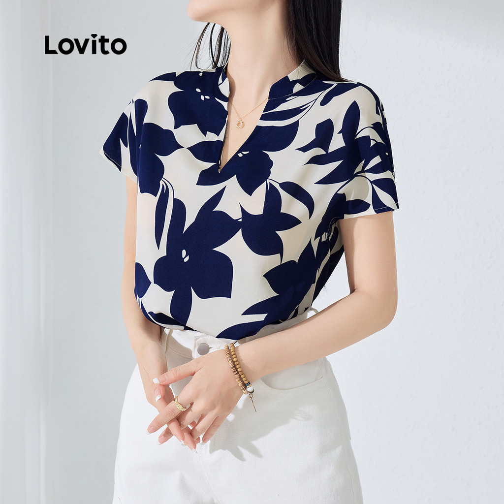 Lovito Blusa Boho com Babados Blusa de Primavera/verão para Mulheres L154ED035