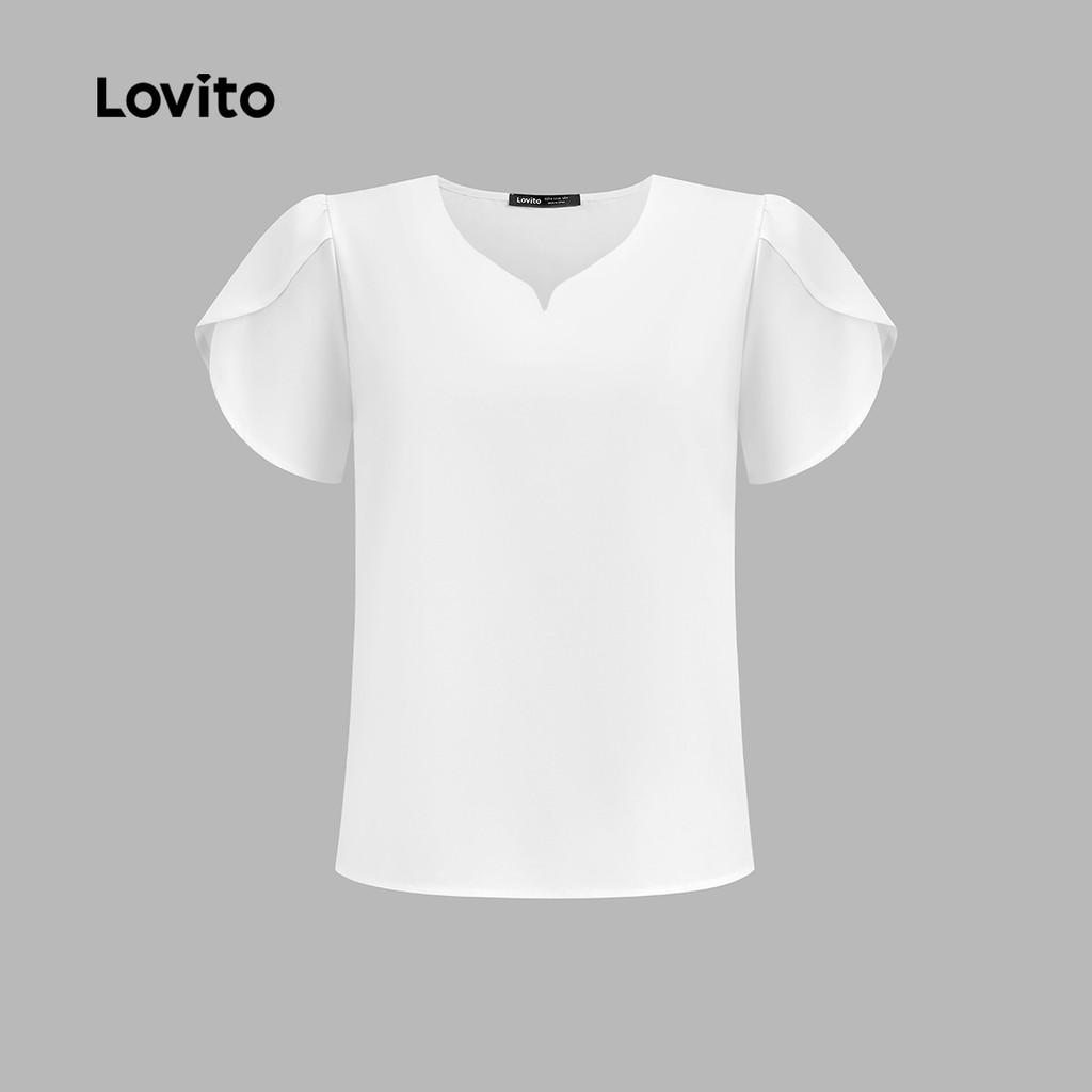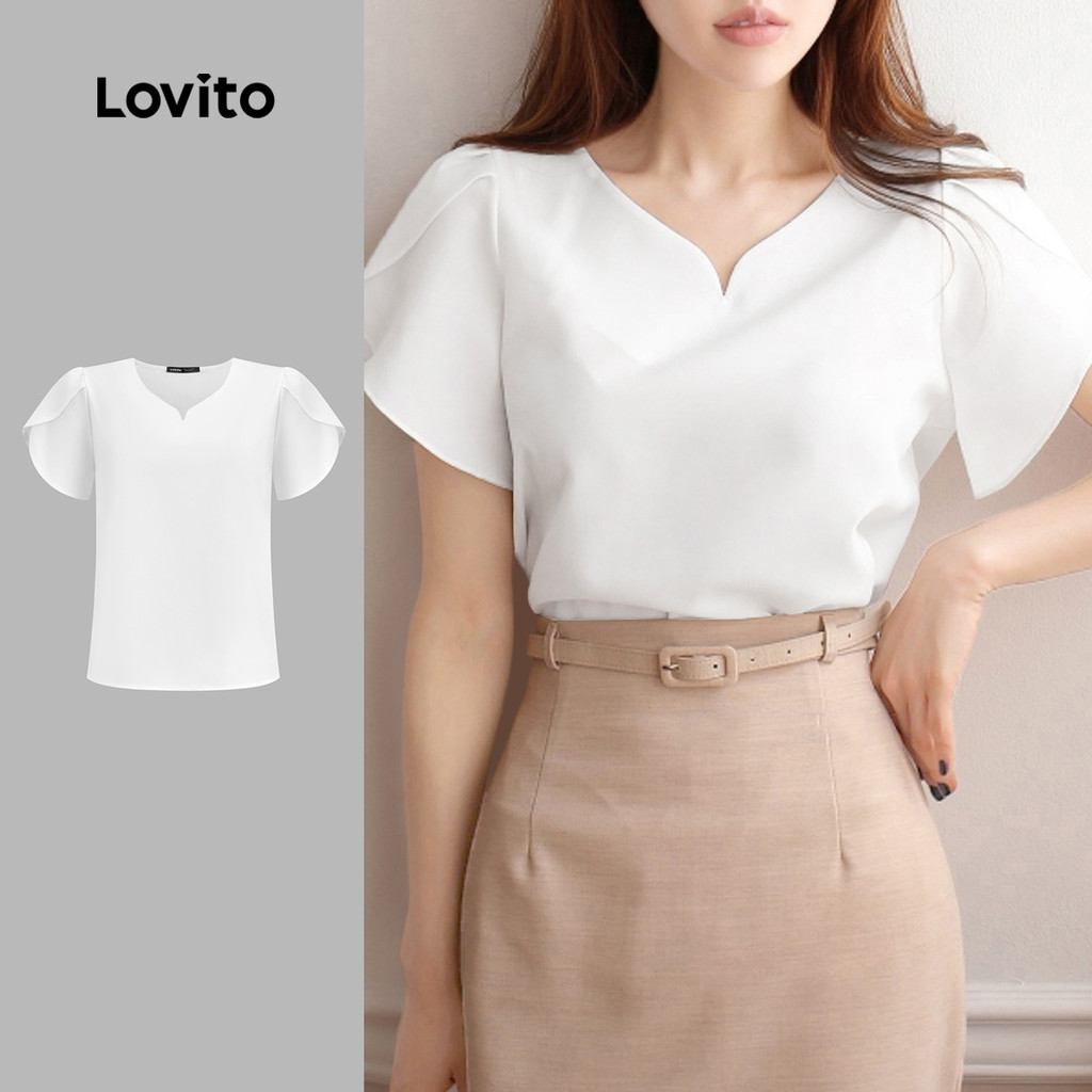 Lovito Blusa elegante com babados lisos para mulheres L132ED614\3