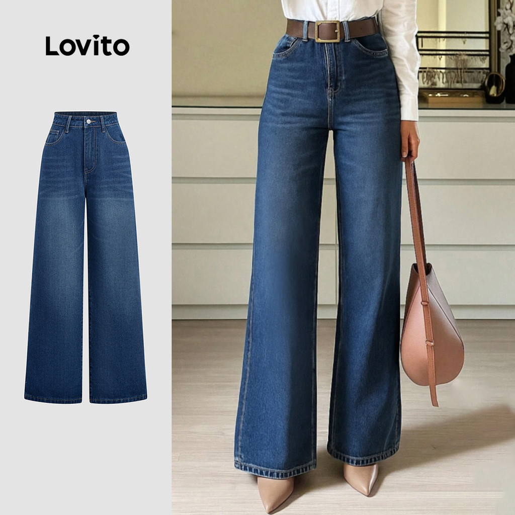 Lovito Calça Jeans Elegante Estilo Retrô Americano Para O Dia a Dia Primavera/verão Calça Jeans Azul Feminina L165ED1550
