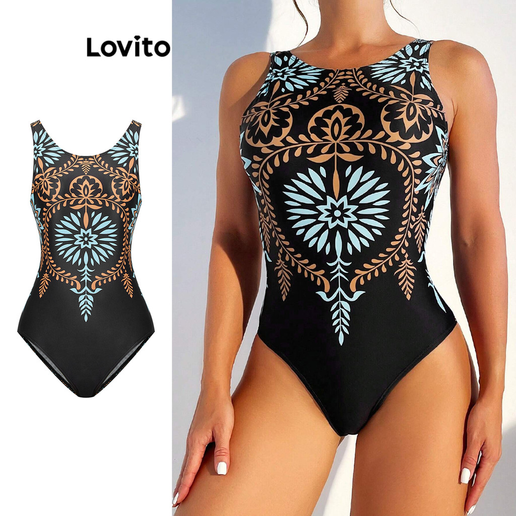 Lovito Maiô Boho De Uma Peça Com Estampa Tribal, Peça Única Básica Para Mulheres LBL16812