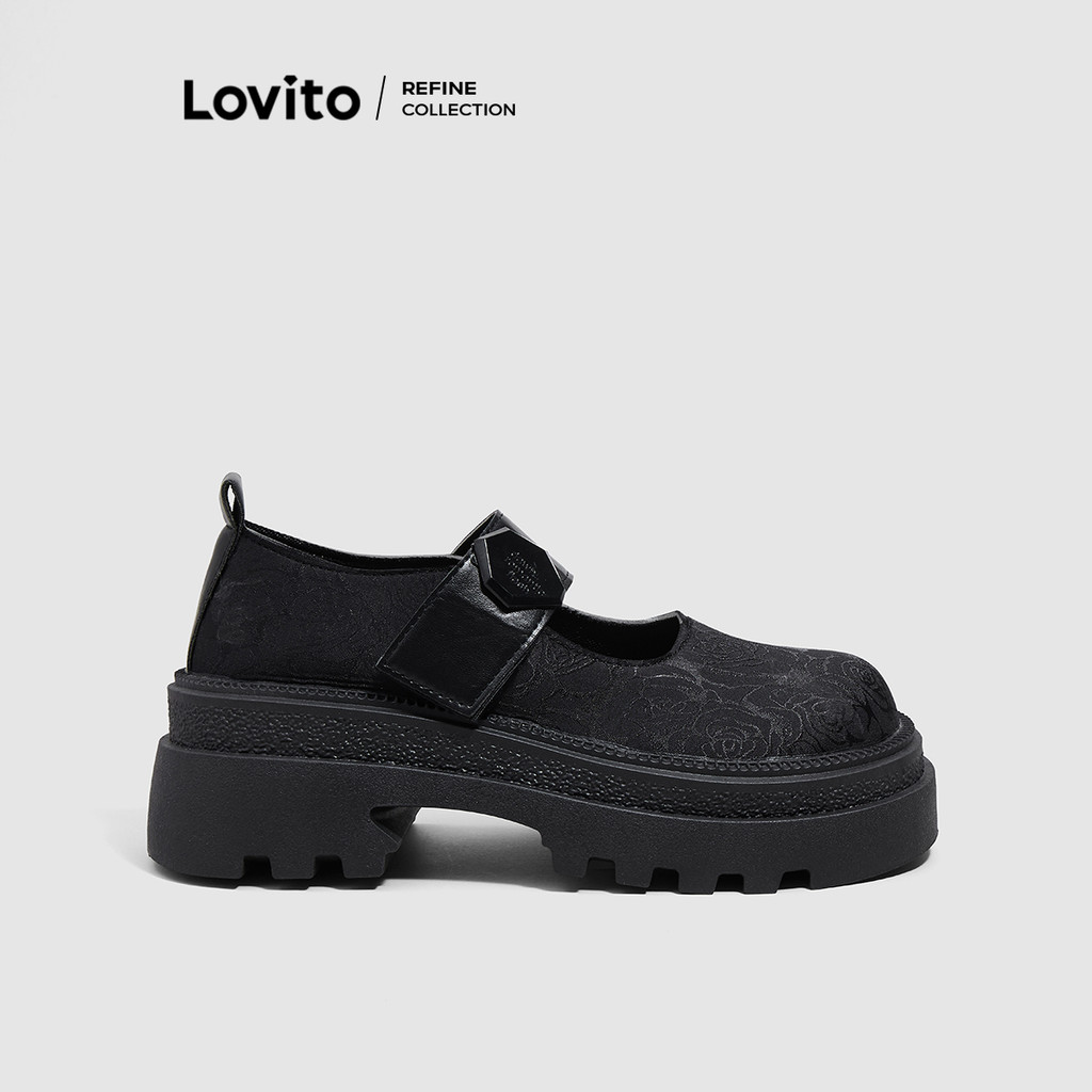 Lovito Bordado de ilhós floral novo estilo chinês fundo grosso mary jane para mulheres LFA46137