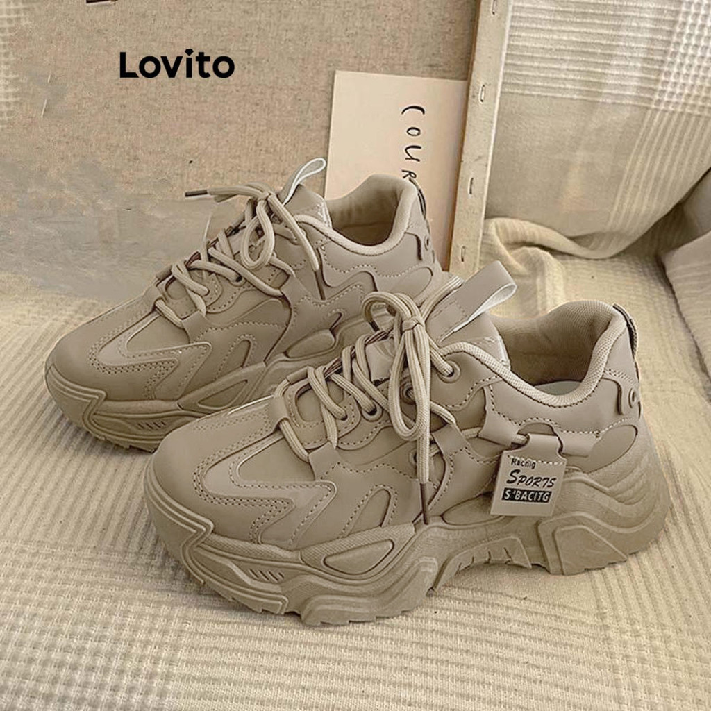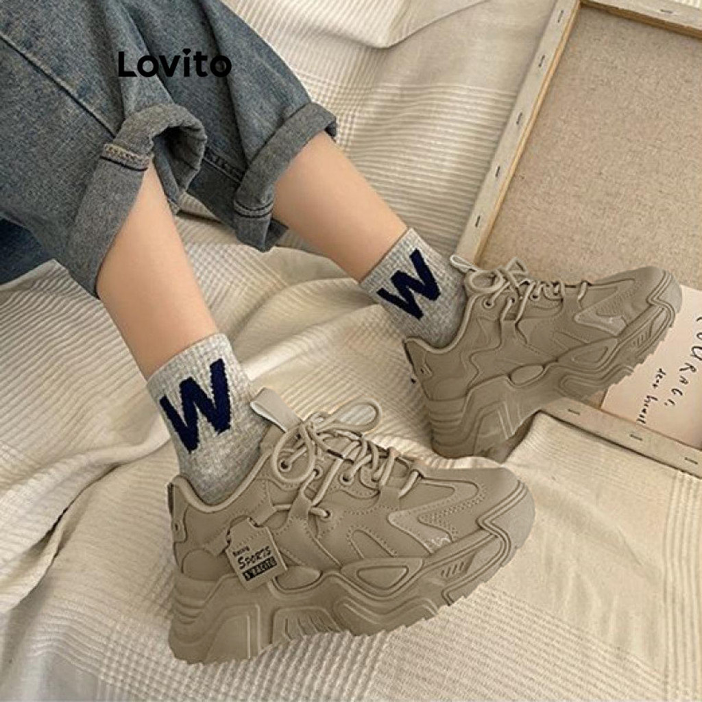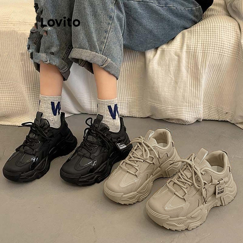Lovito Casual Versão Coreana Versátil Sola Grossa Aumenta a Altura Confortável Respirável Tênis para Mulheres LFA62230
