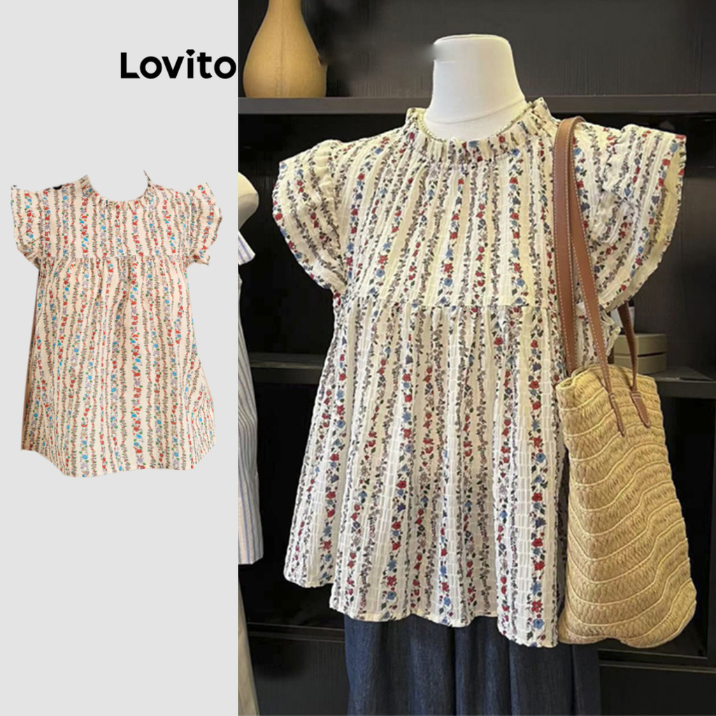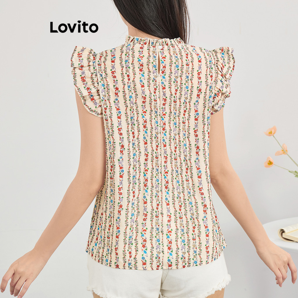 Lovito Blusa Boho Verão/Primavera Ditsy Floral Ruffle Tecido Costura Blusa Para Mulheres L120ED1115