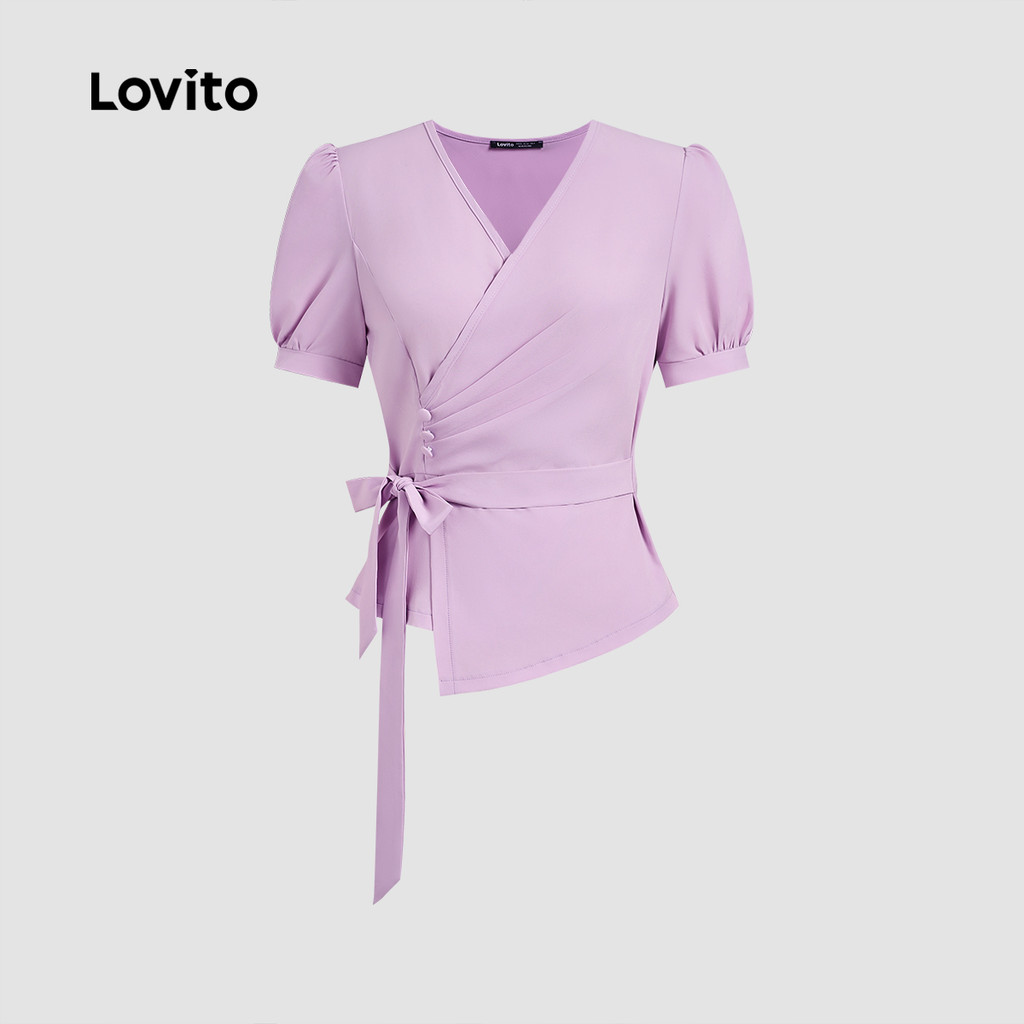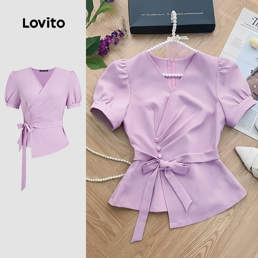 Blusa Feminina Roxa Elegante Lovito Com Botões Lisos E Cadarço Para Primavera/Verão L134ED818