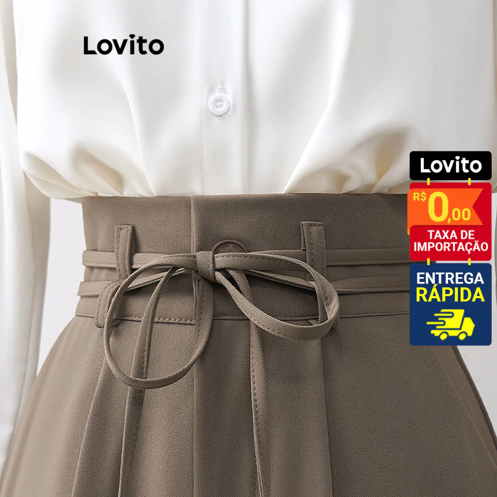 Lovito x Glenda Calça Feminina Pantalona com Amarração na Cintura LNE31118