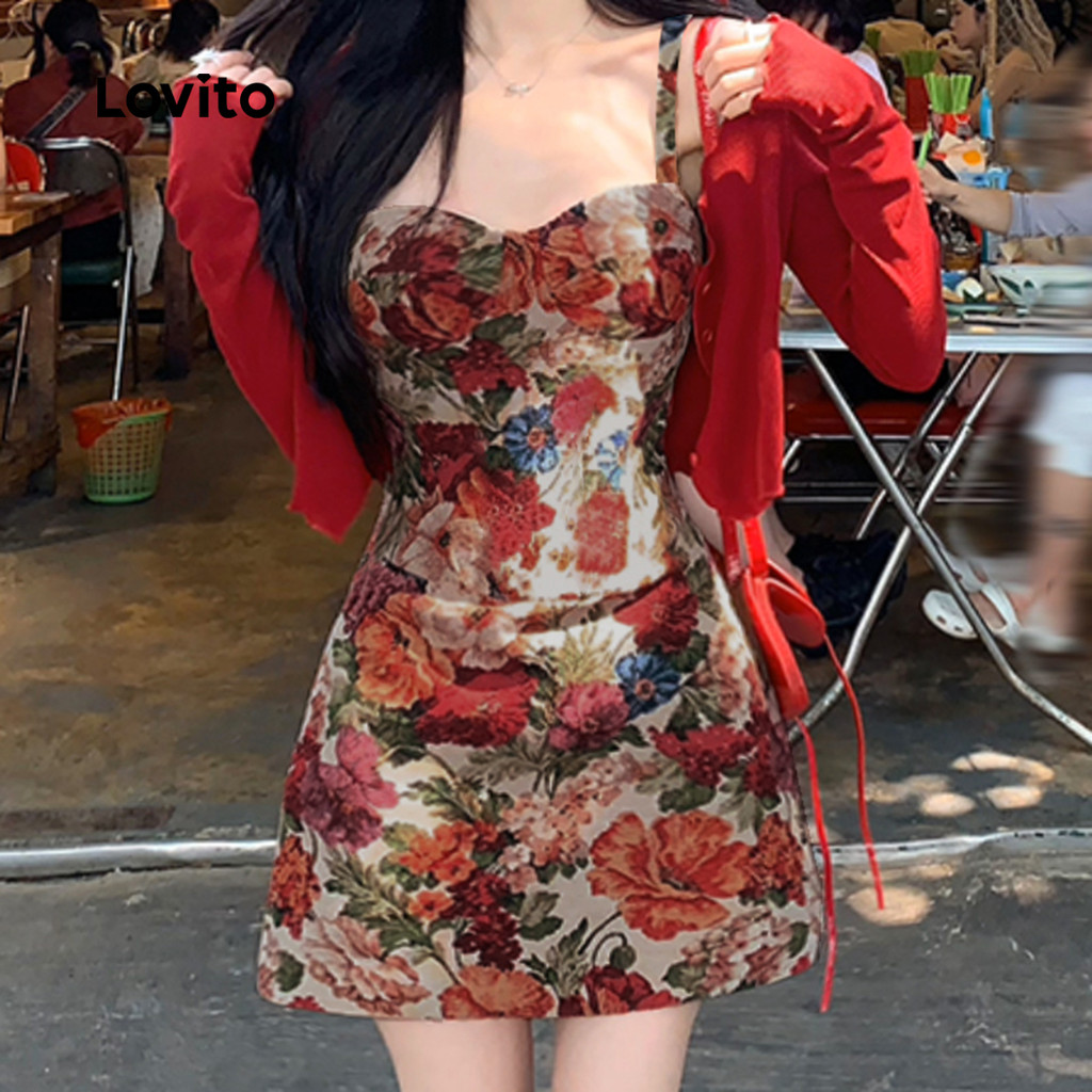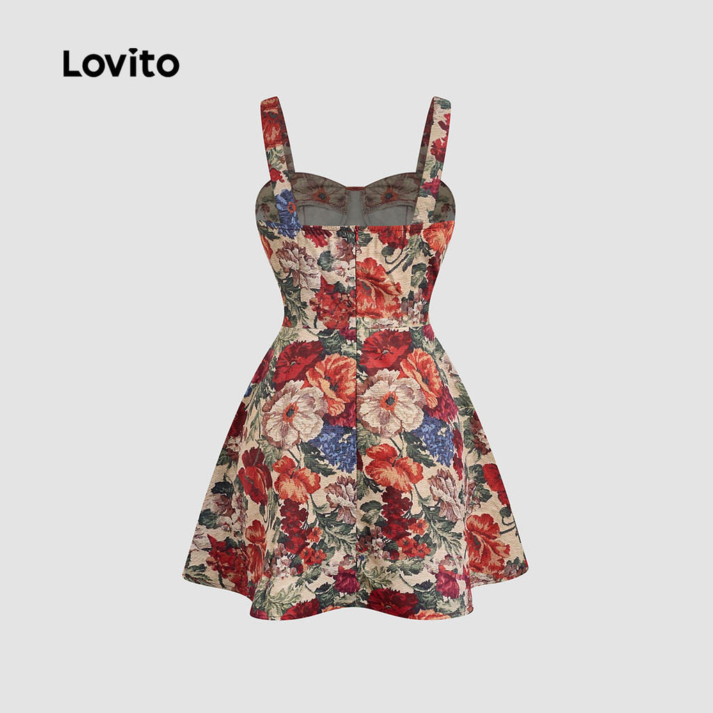 (New) Lovito Vestido Vintage Primavera/verão Vestido Multicolorido para mulheres L144AD149