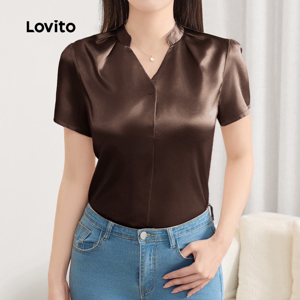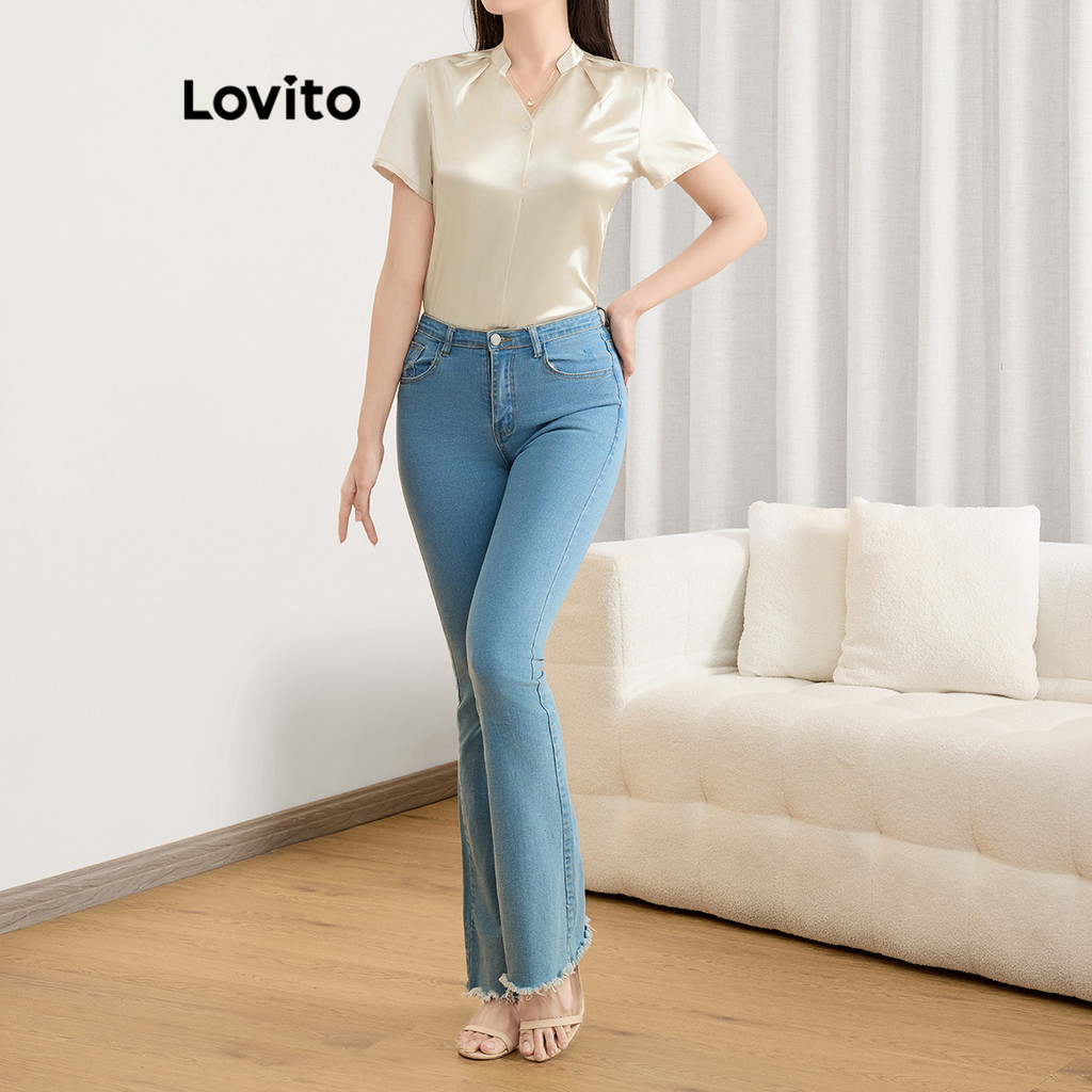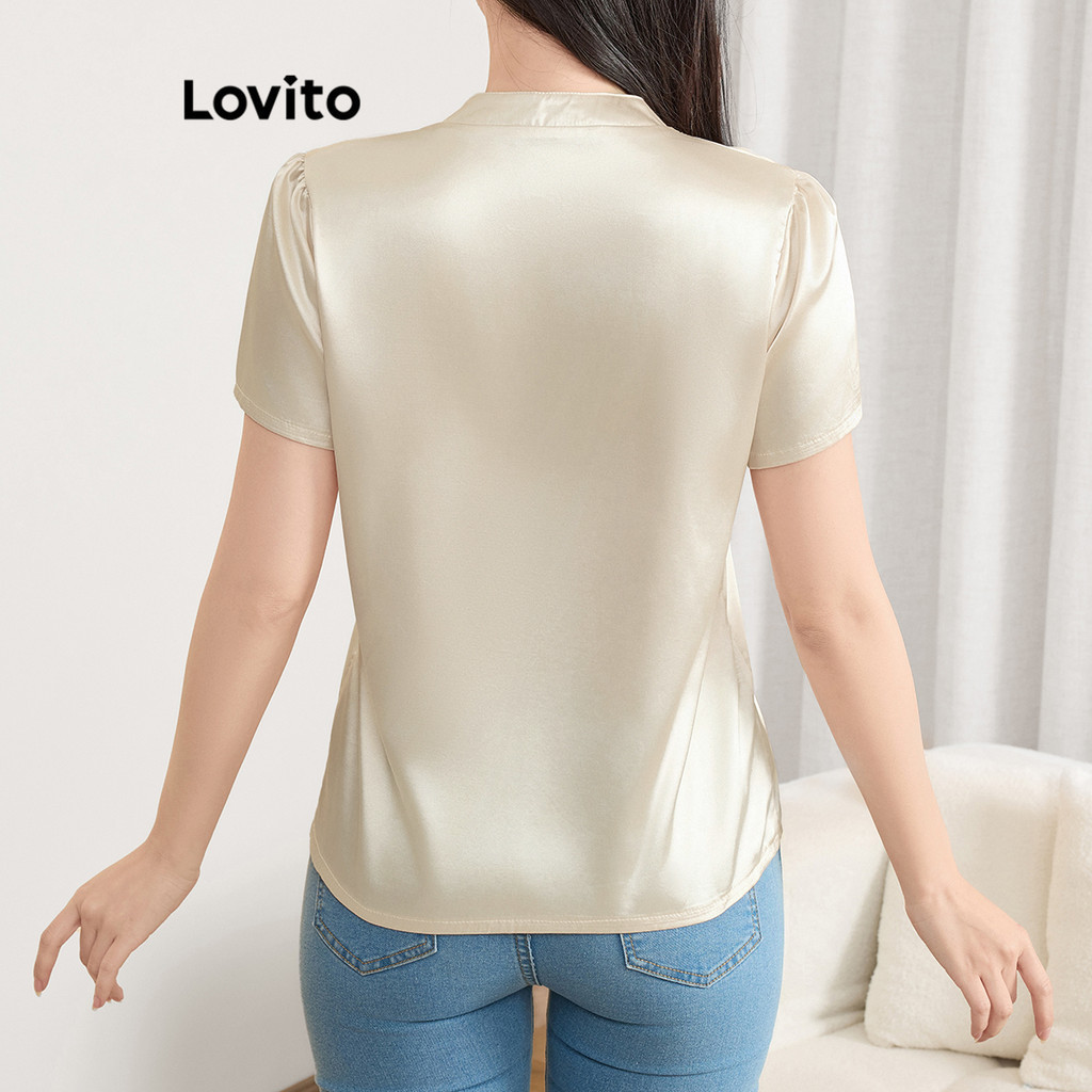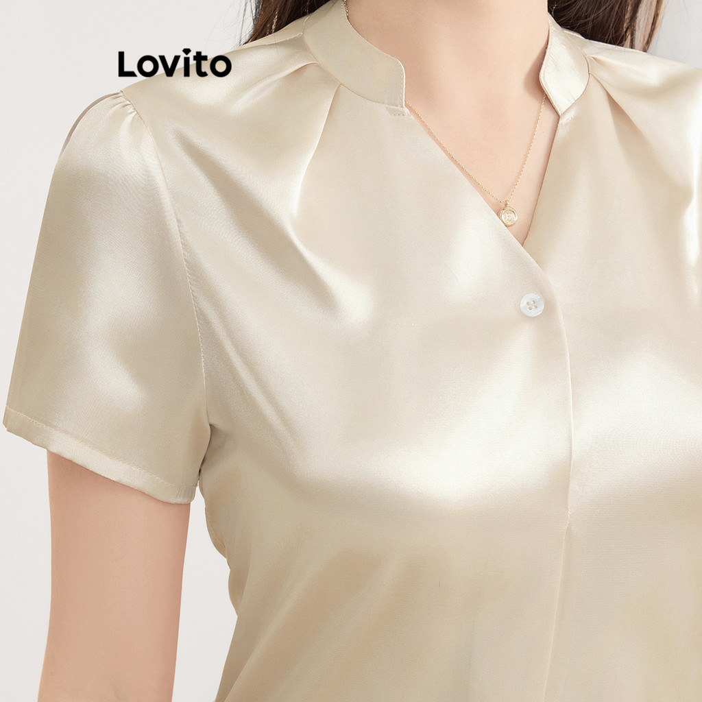 Lovito Blusa Elegante De Verão/primavera Blusa De Verão Plissada Lisa Para Mulheres L121MDD562