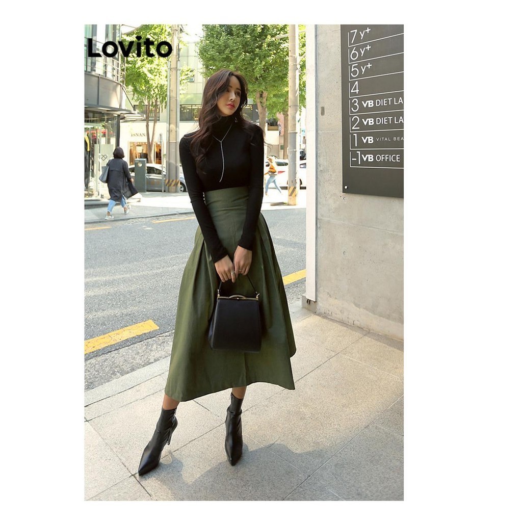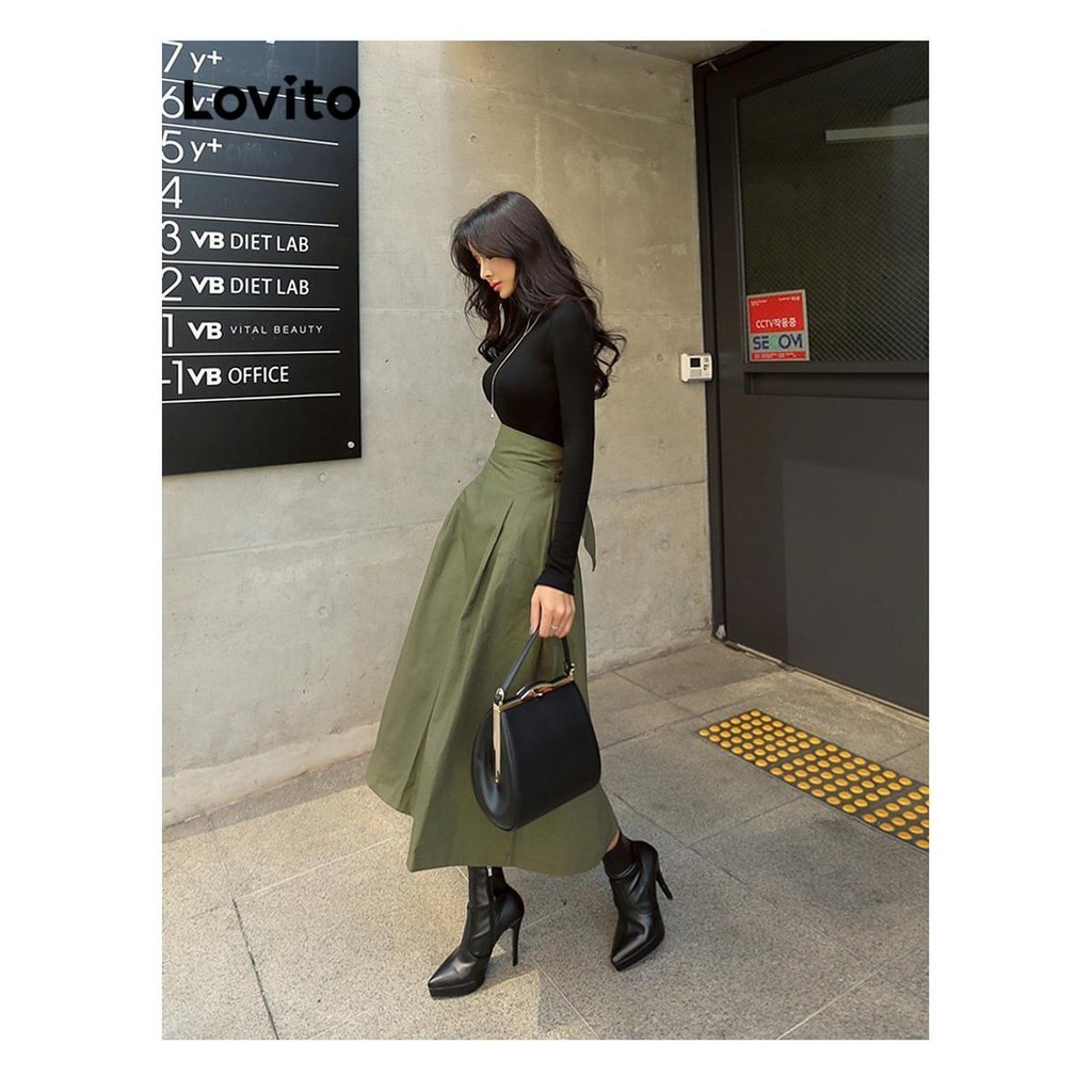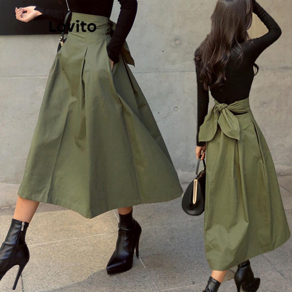 (Trendy) Lovito Saias Casuais Com Laço Liso E Bolso Nas Costas Para Mulheres LNL62346