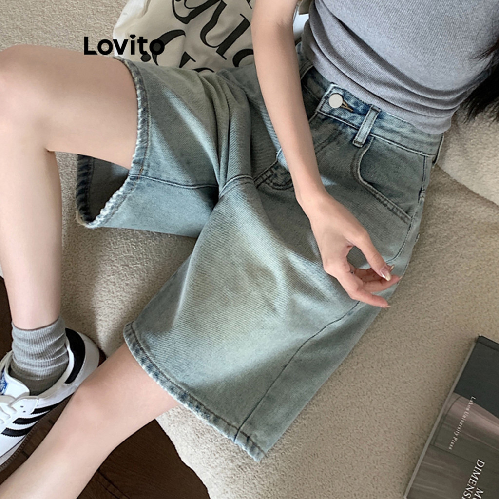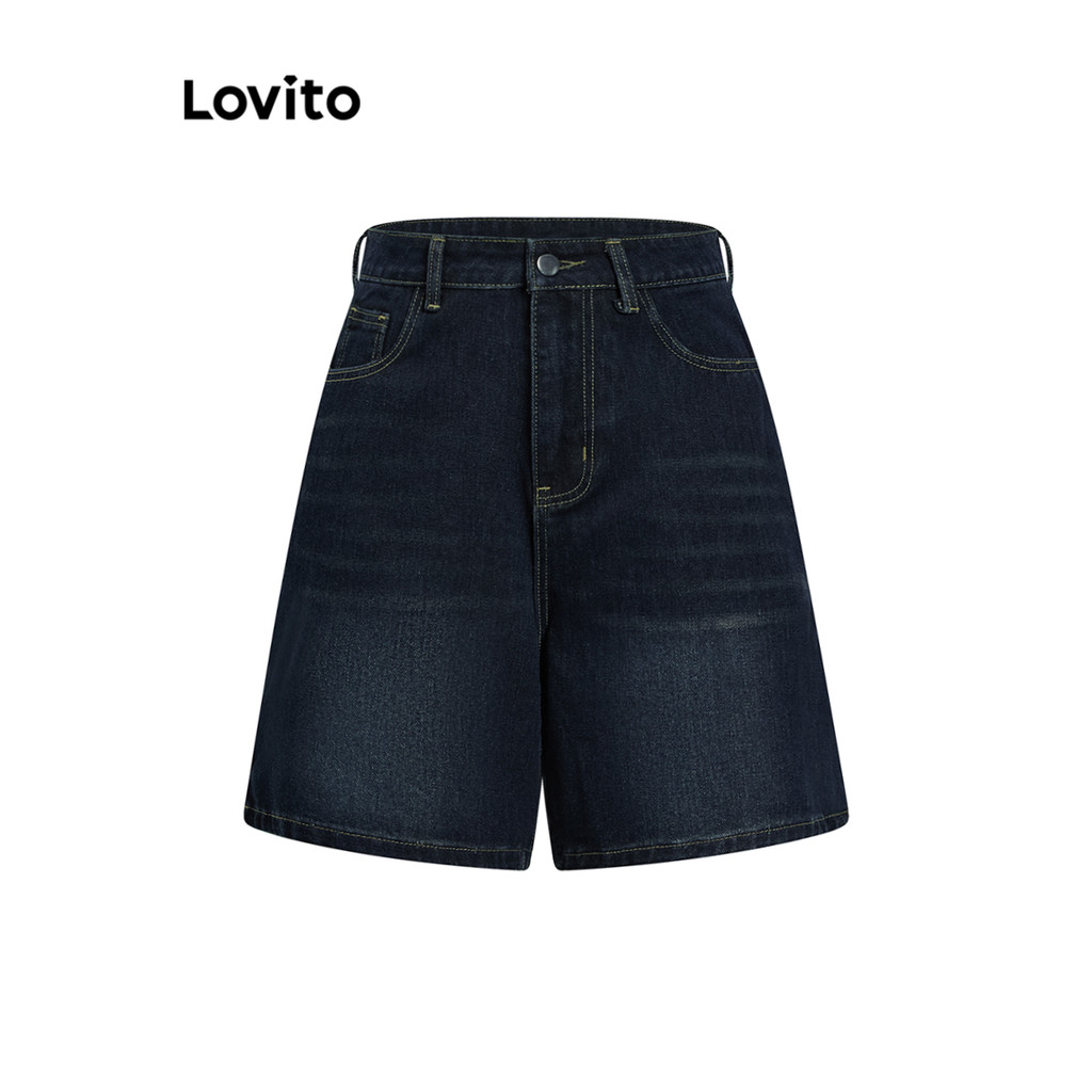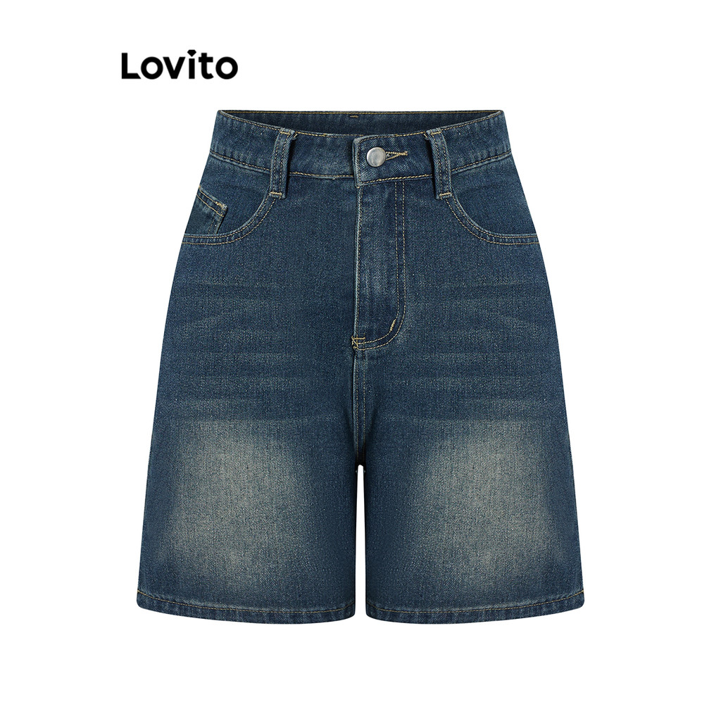 Lovito Shorts Jeans Bolso Feminino Primavera Verão LNA19020 (Multicolor)