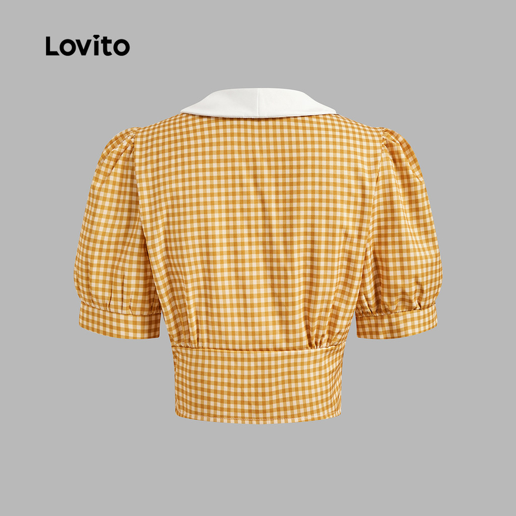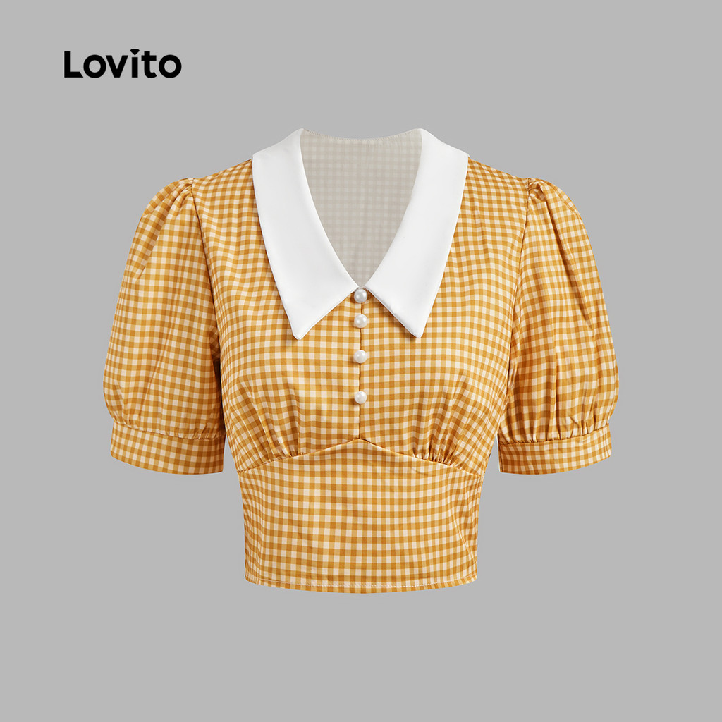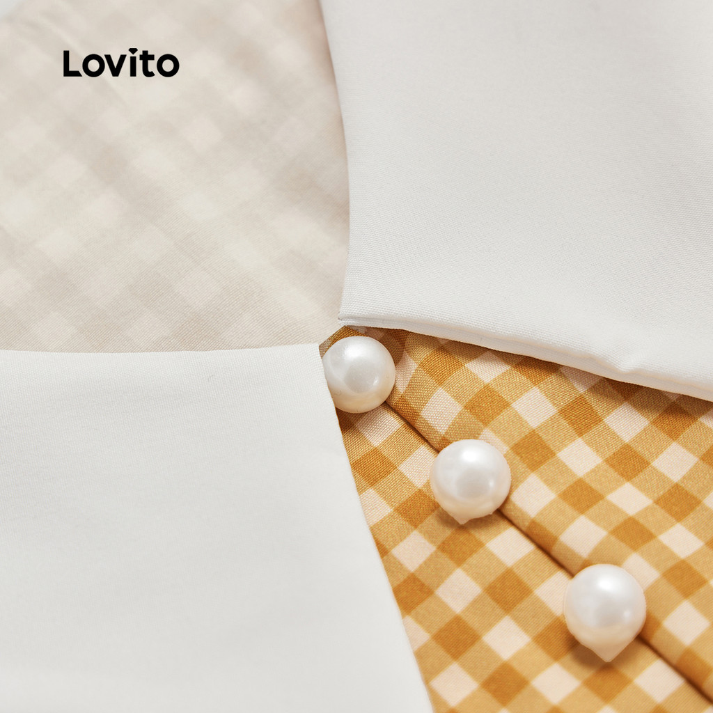 Lovito Blusa Casual xadrez Colorblock pérolas para mulheres L129ED598