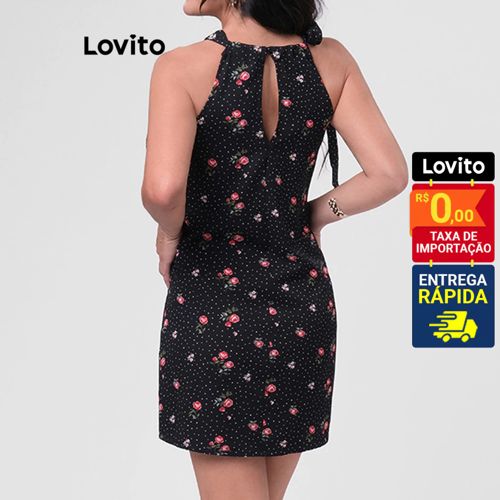 Lovito Vestido Curto Gola Halter Neck Curto Estampado Feminino LB245BRL274