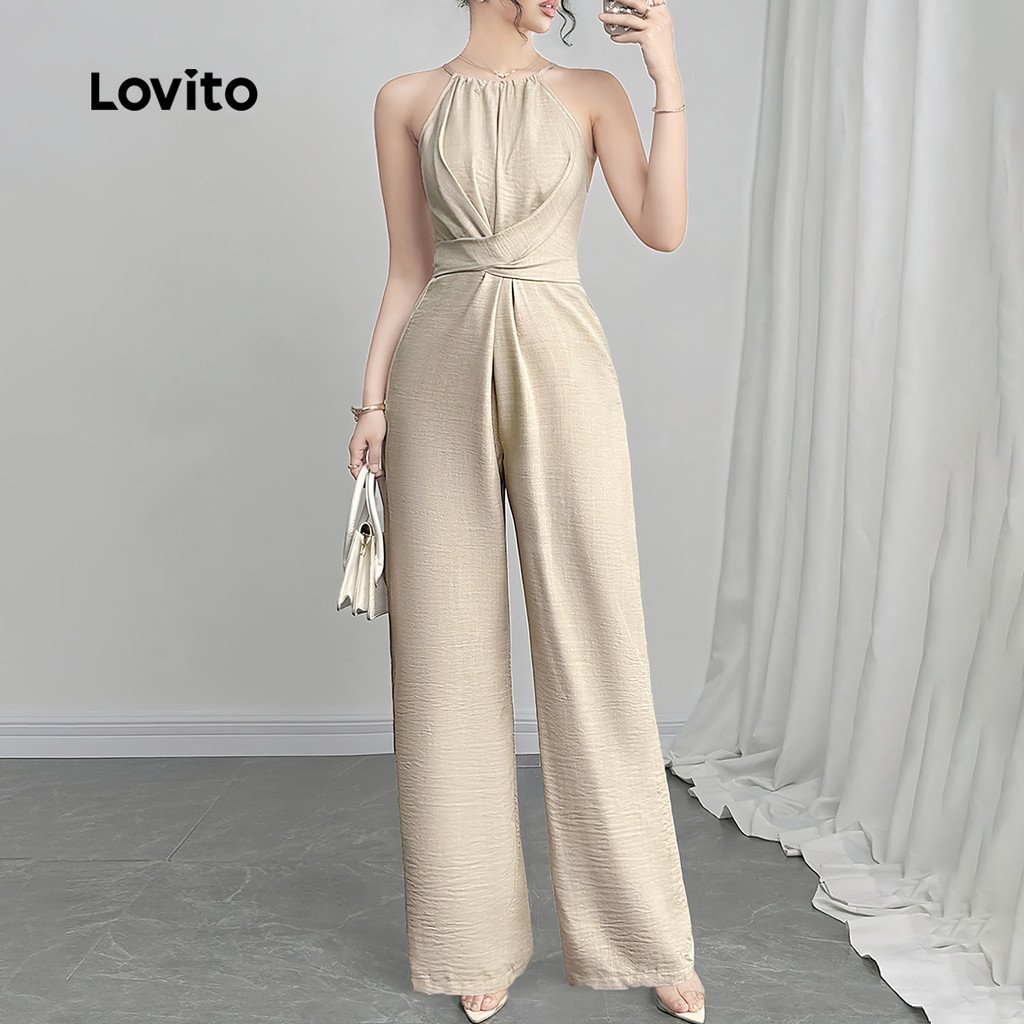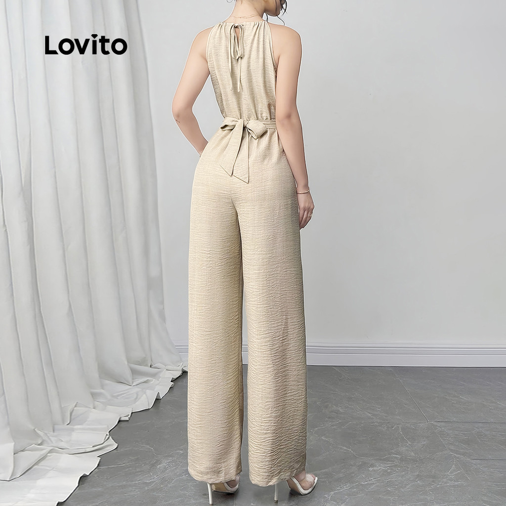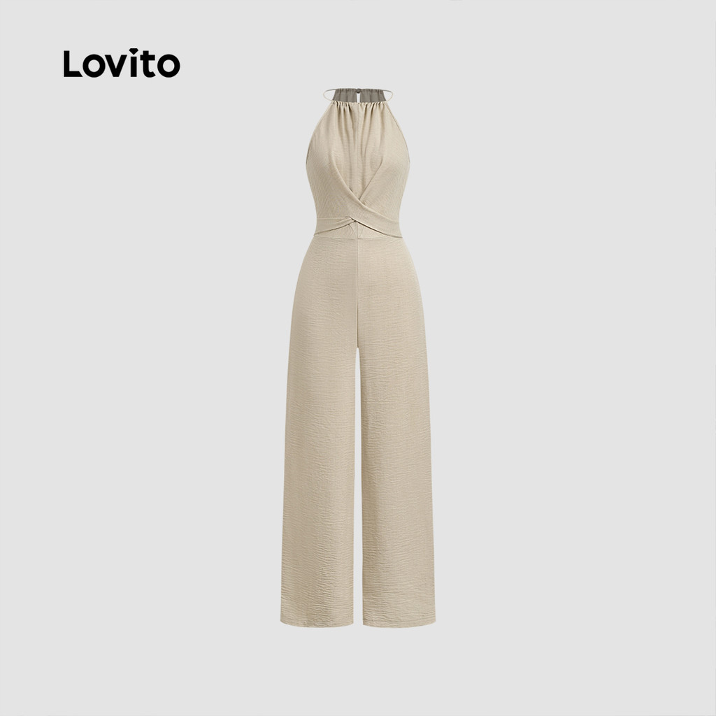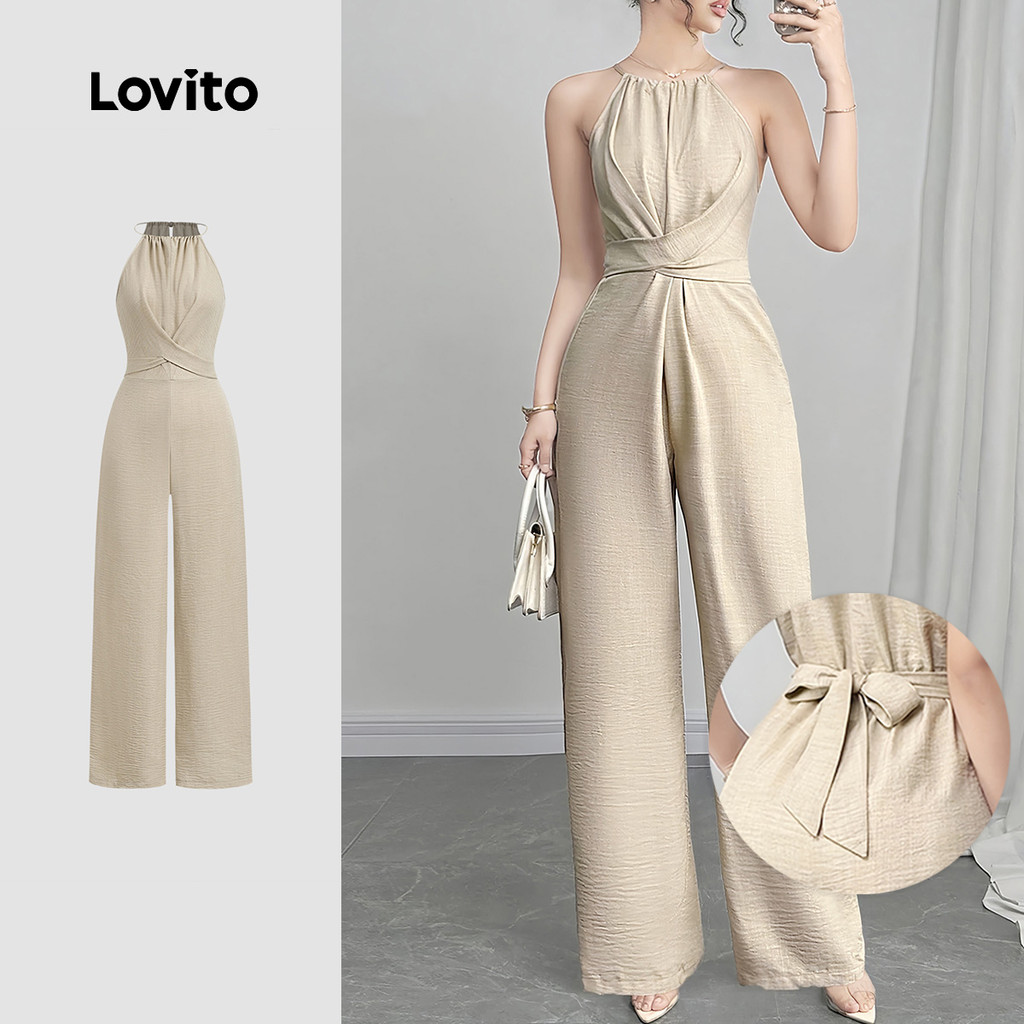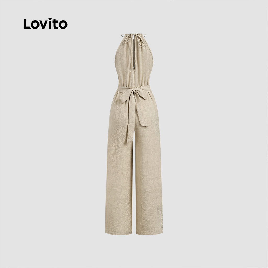 Lovito Macacão Elegante com Laço Nas Costas e Zíper Primavera/verão Caqui para Mulheres LBL27380