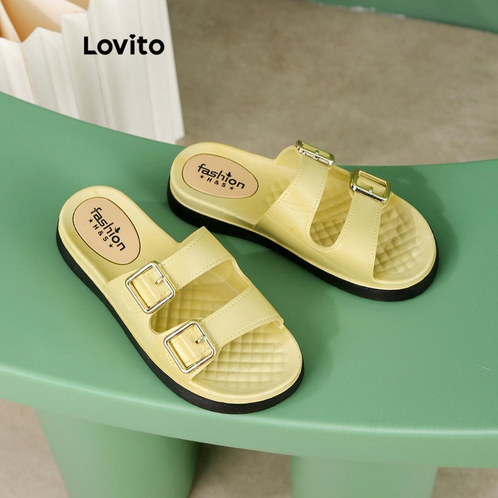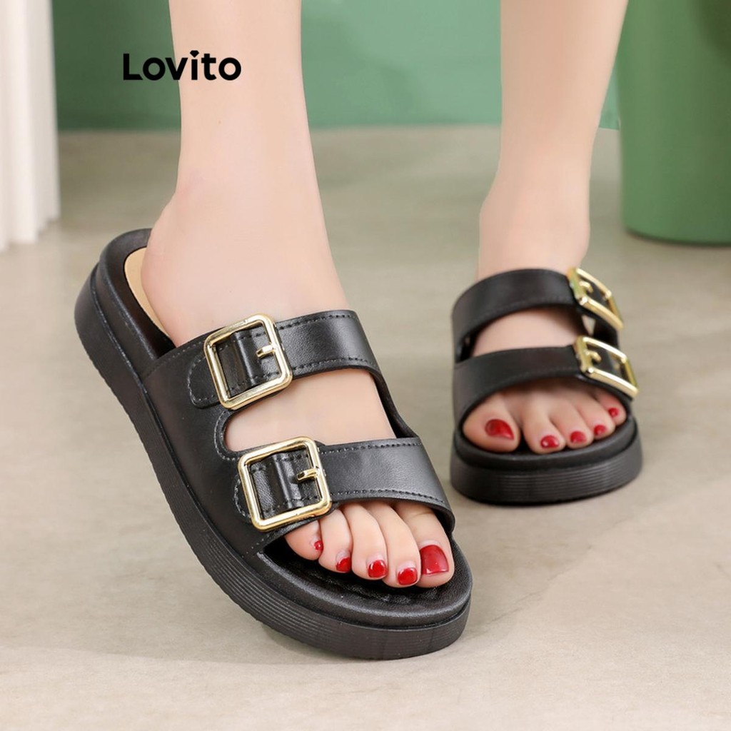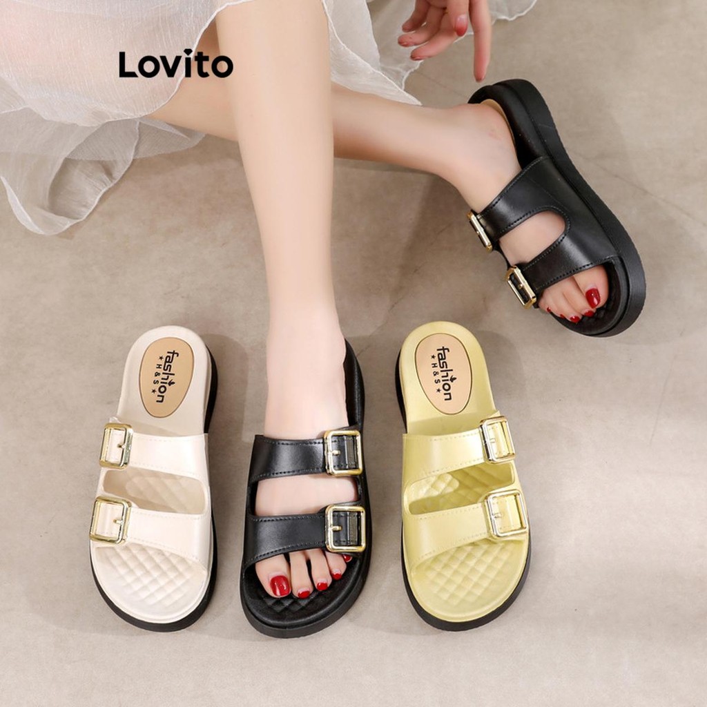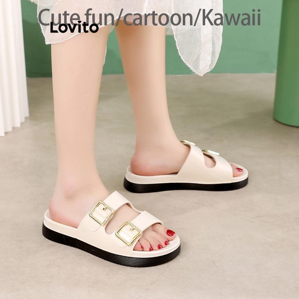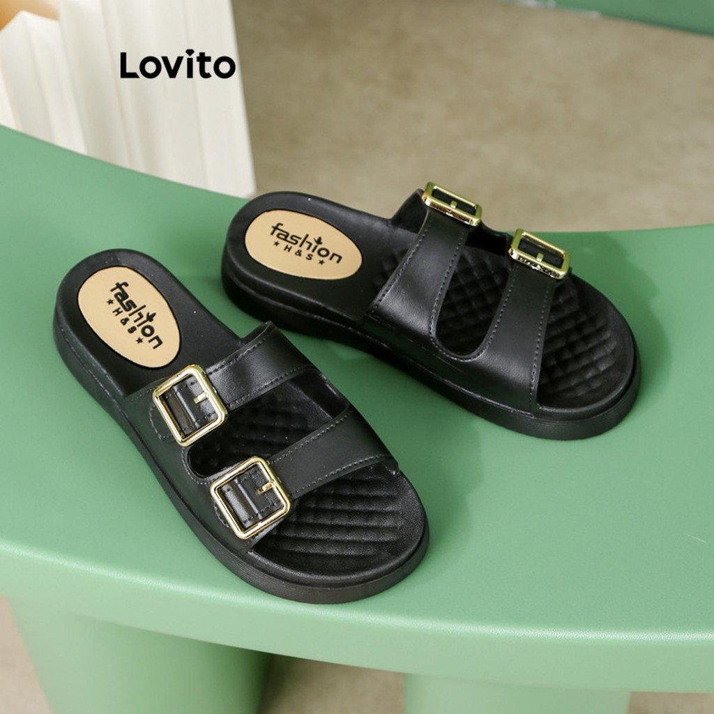 (Trendy) Lovito Sandálias planas casuais com fivela lisa Colorblock para mulheres LFA66223