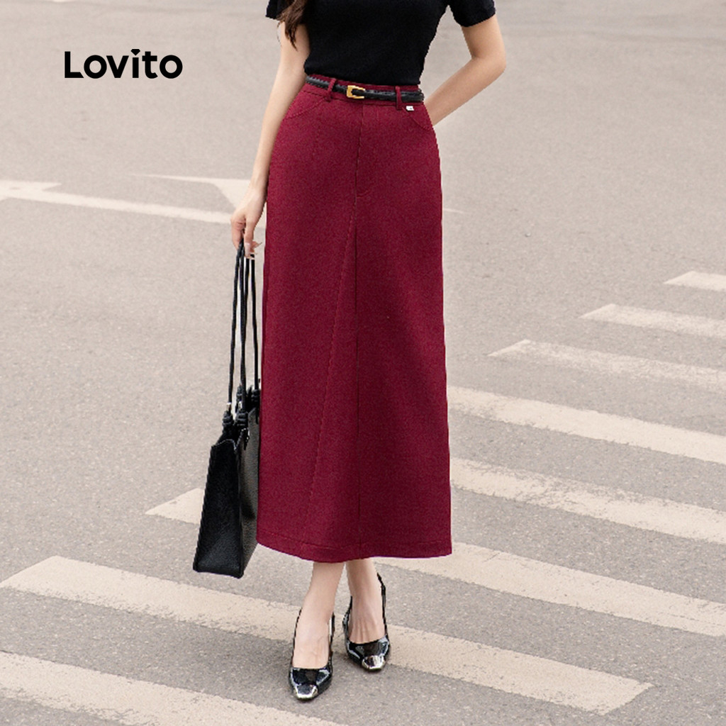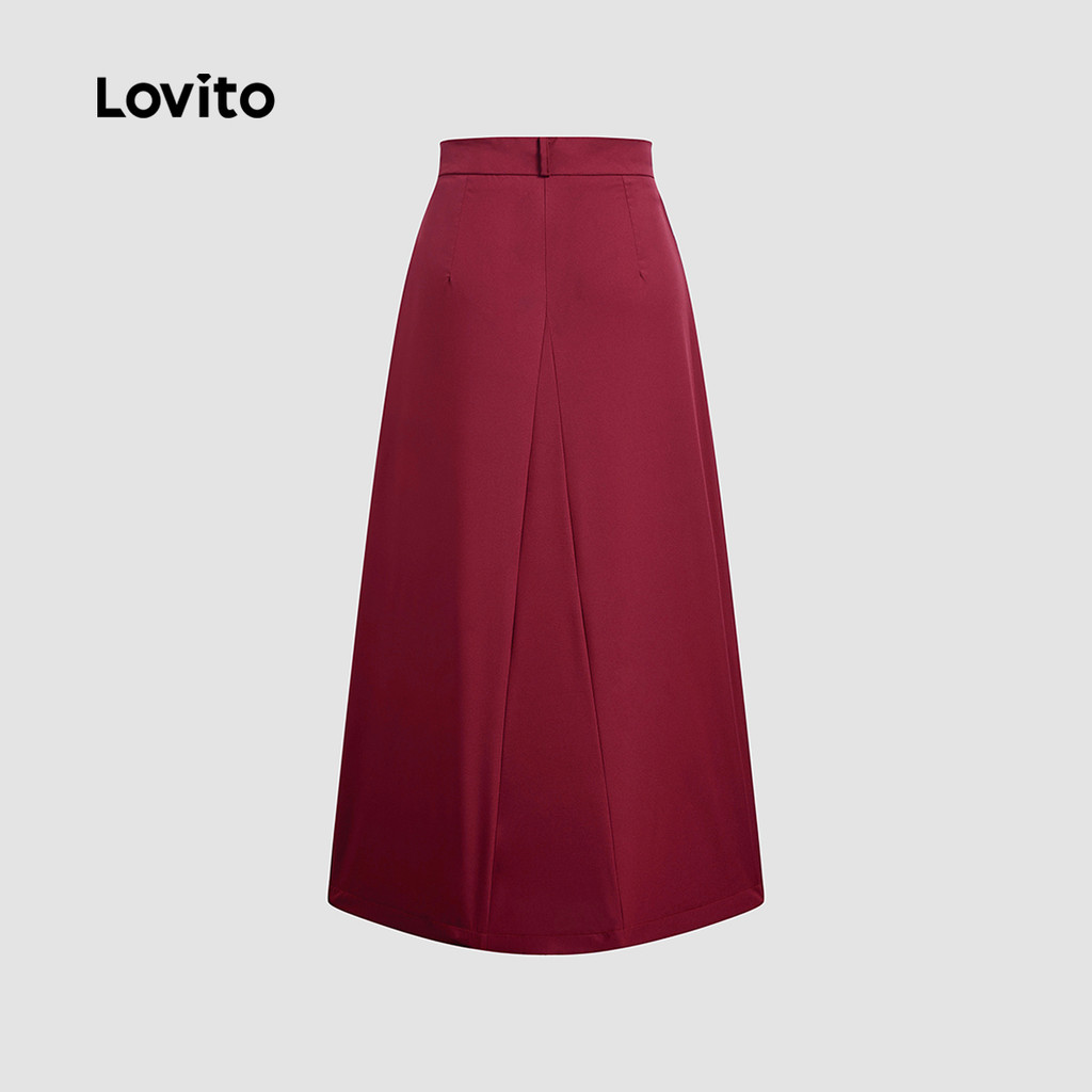 (NEW) Lovito Saia Elegante com Zíper Primavera/verão Saia Vermelha para mulheres L154ED305