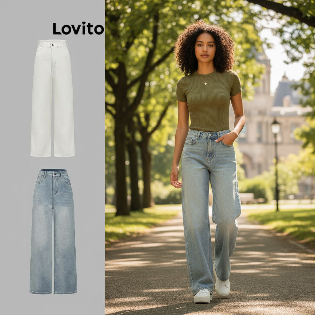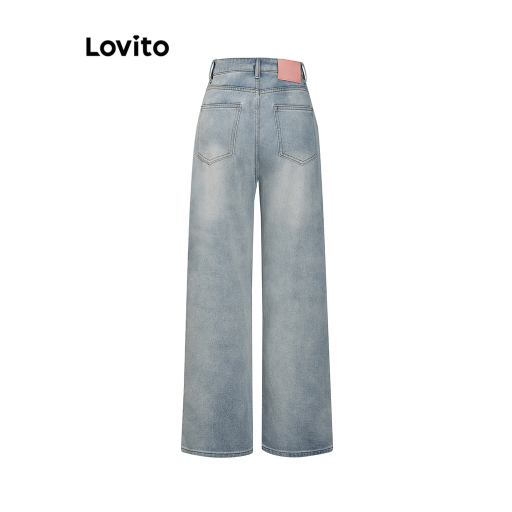 Lovito Casual Calça Jeans Feminina Lisa com Bolso L70AD071\6