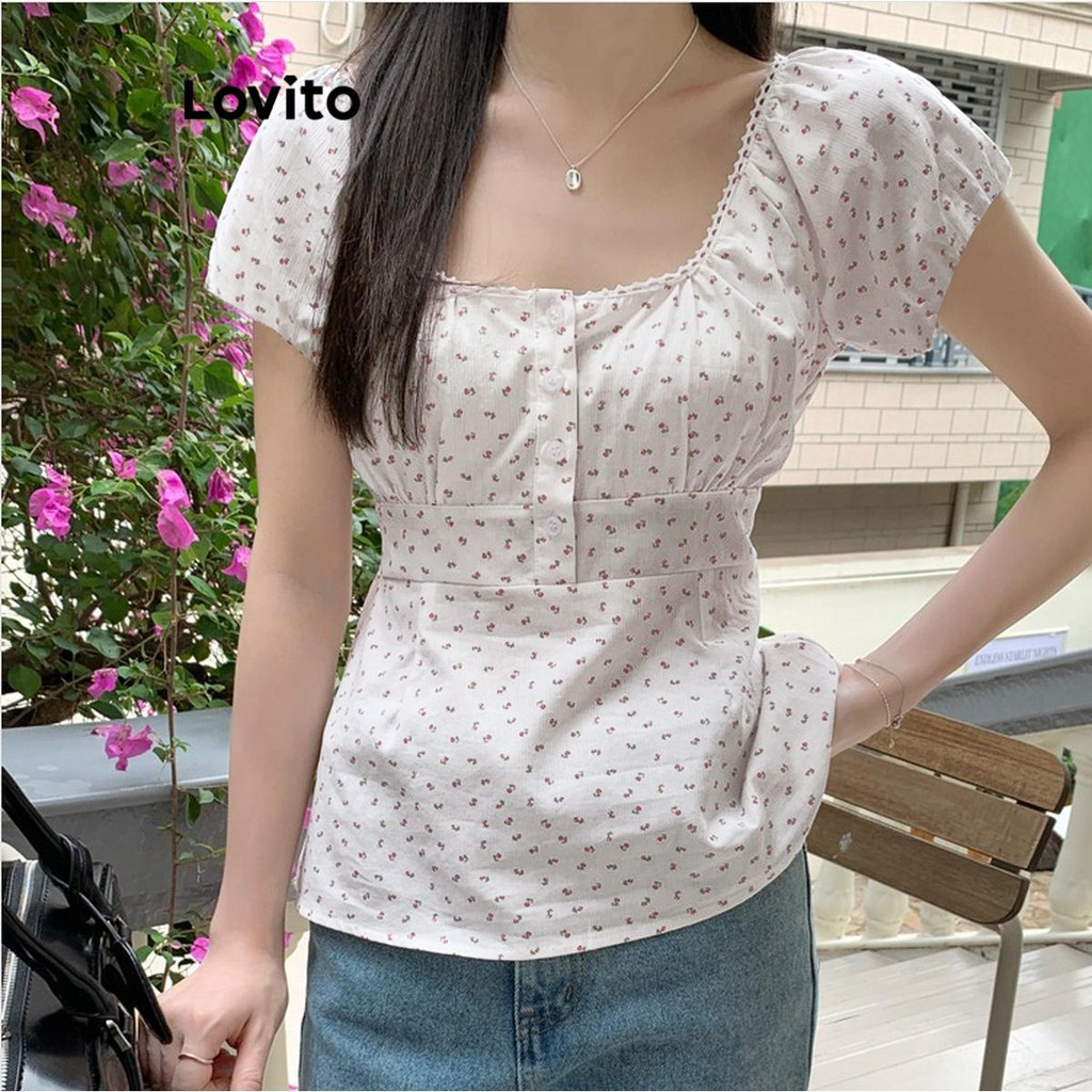 Lovito Blusa Casual Ditsy Floral Button Flowers Blusa Para Mulheres LNM65156