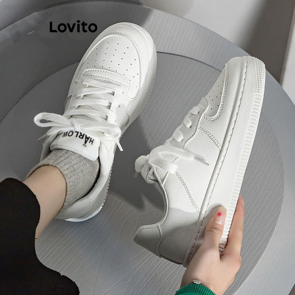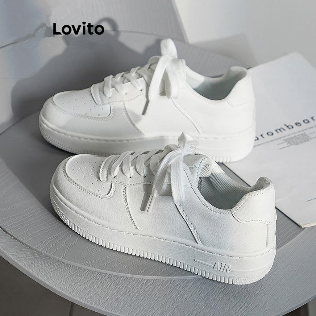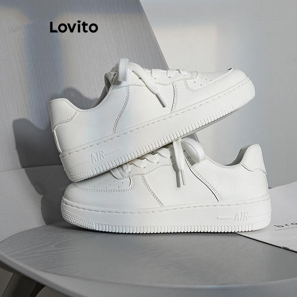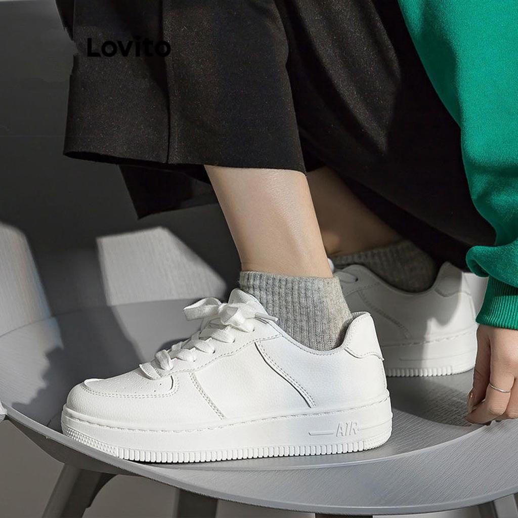 Lovito Sapatos esportivos lisos com cadarço para pai tênis de sola grossa para mulheres LFA32425