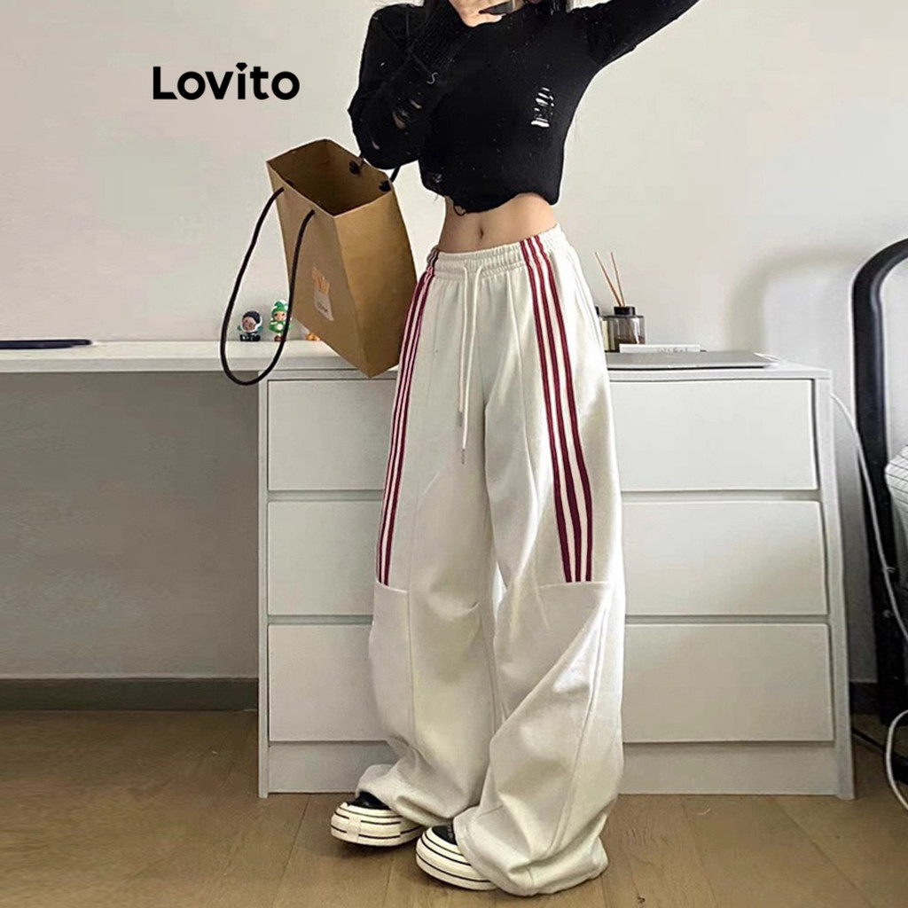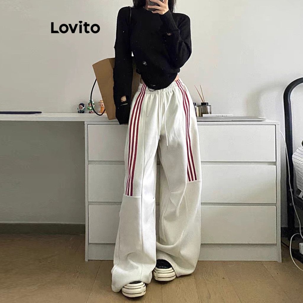 Lovito Calça Casual Com Listras Laterais Lisas Para Mulheres L122AD006