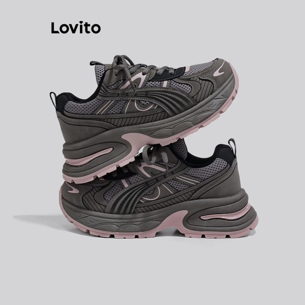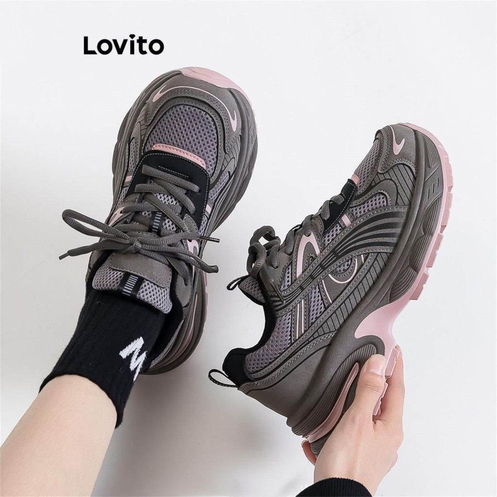 Lovito Esporte liso Colorblock Ins aumentar altura tênis para mulher LFA71102