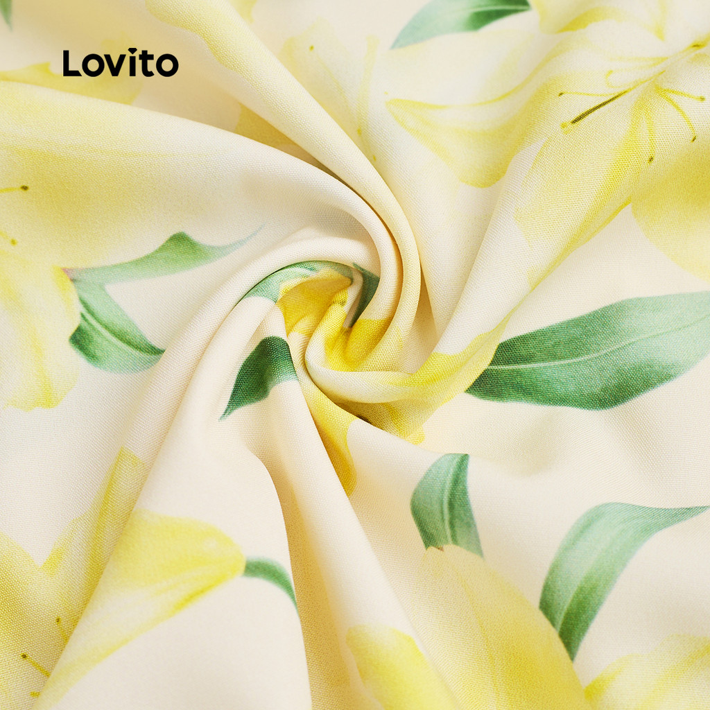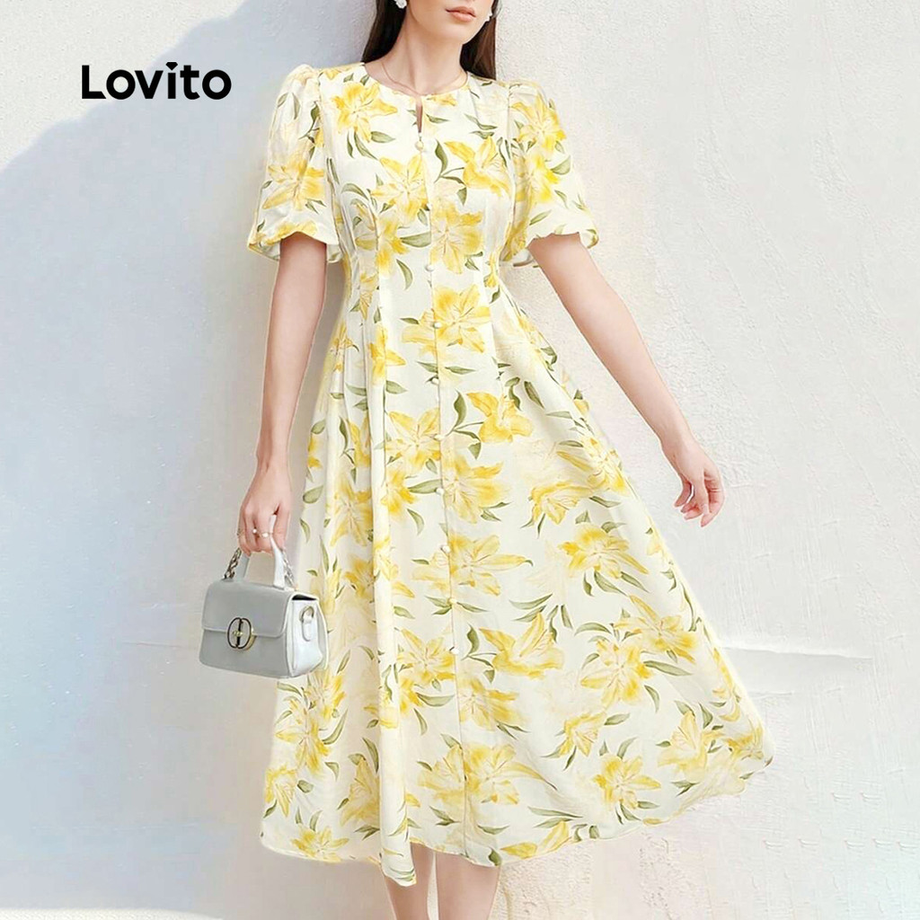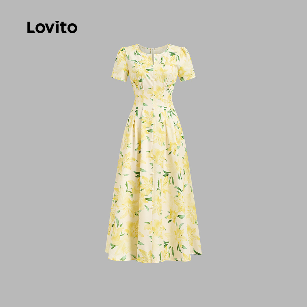 Lovito Vestido Amarelo Romântico Com Botões Florais Para Primavera/verão Para Mulheres L134ED401