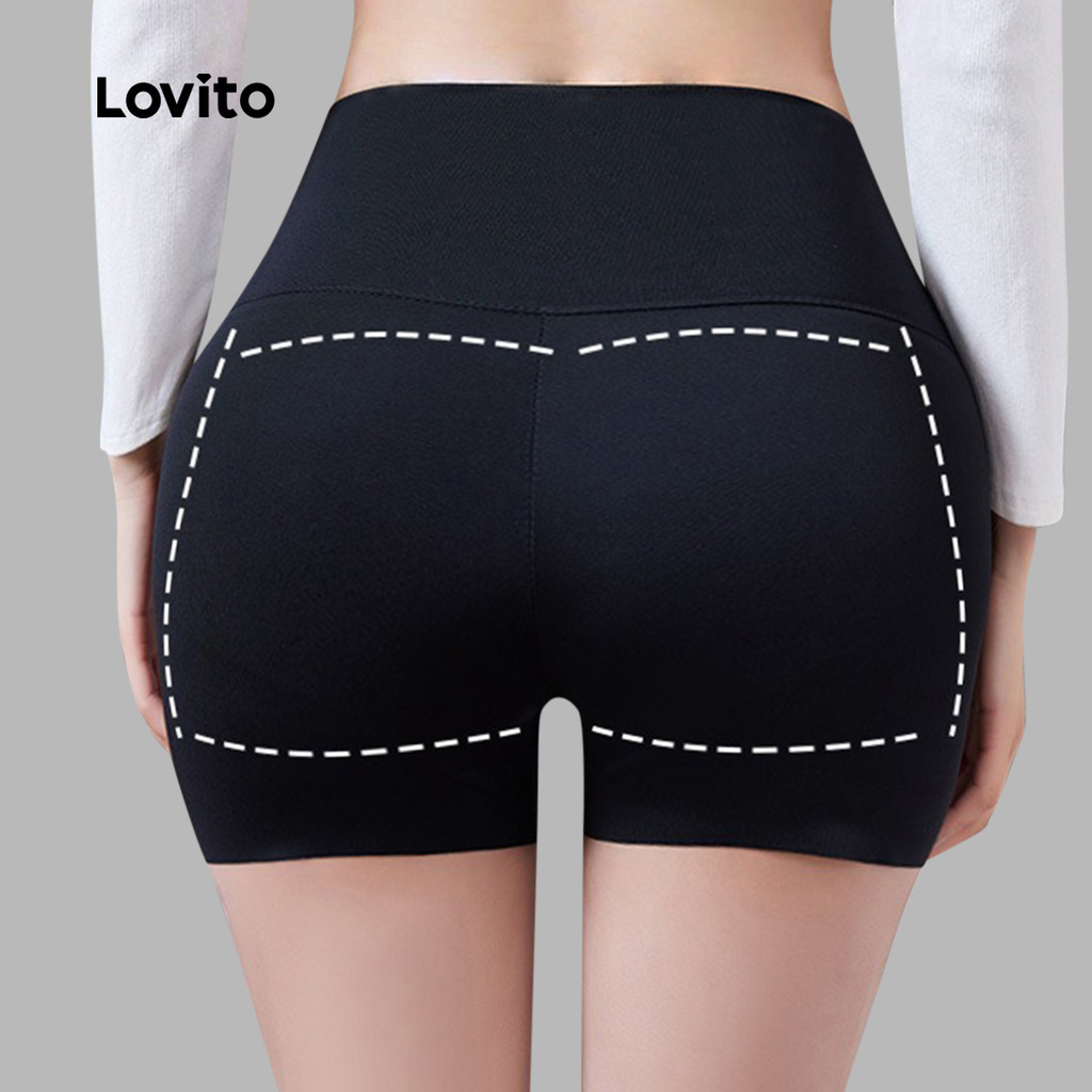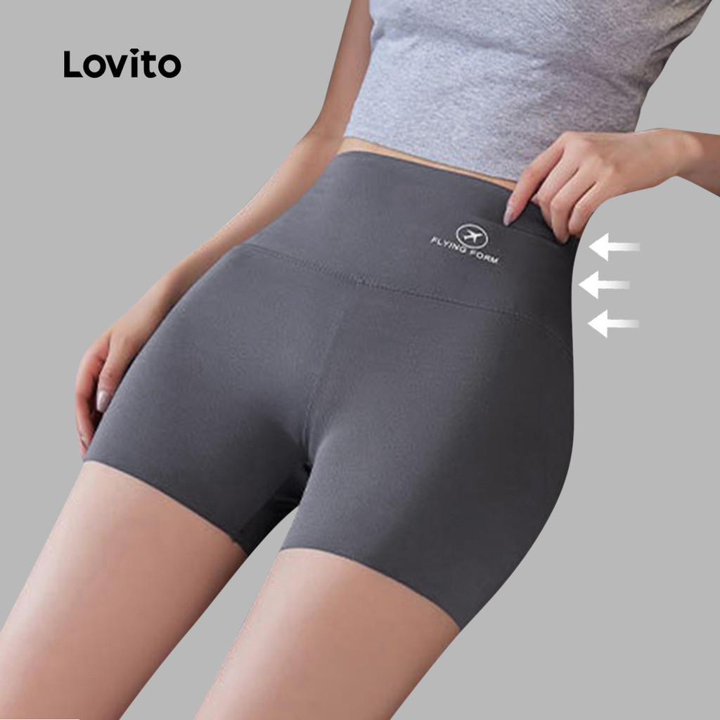 Lovito Shorts esportivos cintura bunda de pêssego levantamento controle de barriga modelagem treino mulheres LNE116X053