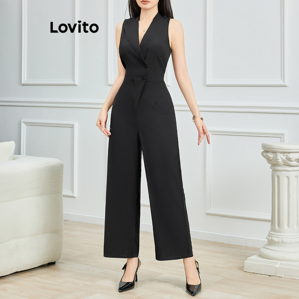 Lovito Macacão casual simples assimétrico para mulheres L118ED293