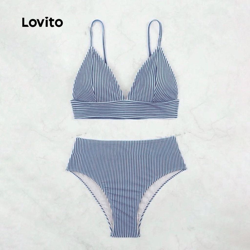 Lovito Conjuntos De Biquíni Listrados Sensuais Para Mulheres LNL91018