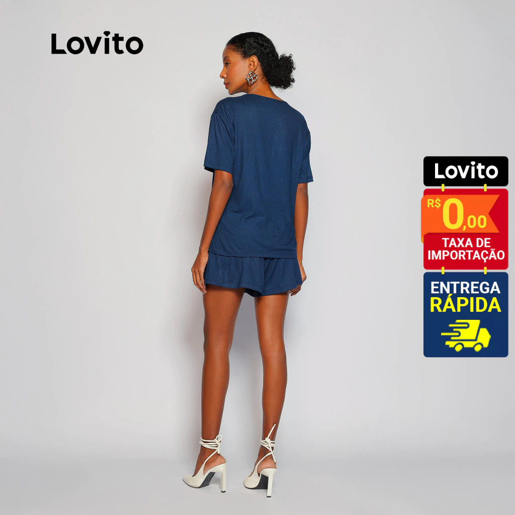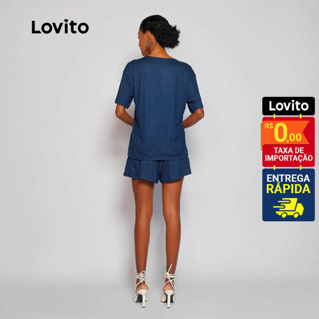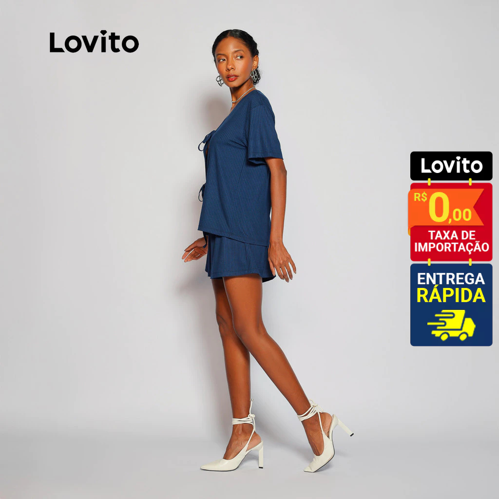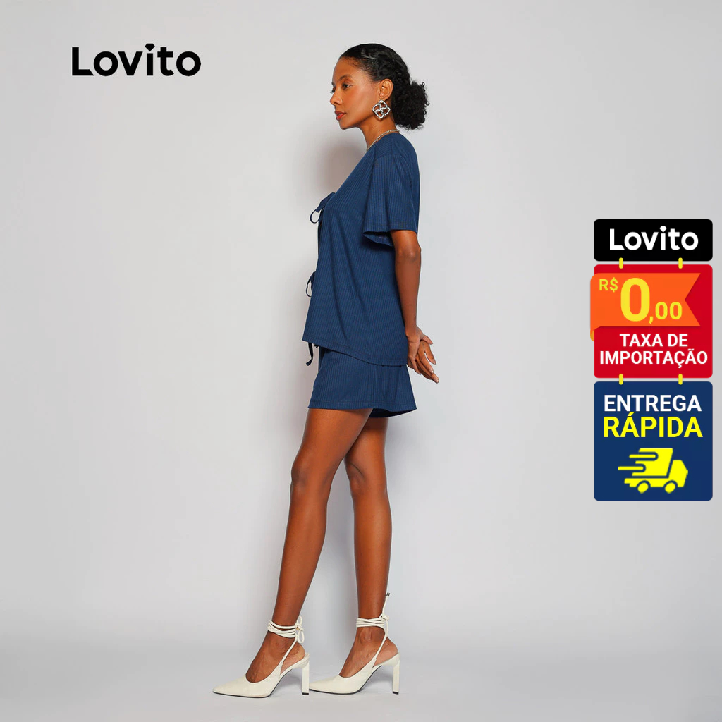 Lovito Conjunto Casual de Shorts com Amarração para Mulheres LB642BRL672