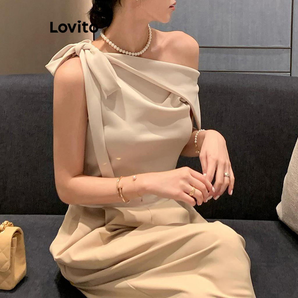 Lovito Regata Casual Lisa Ombro Frio Regata Assimétrica Para Mulheres LNM64131