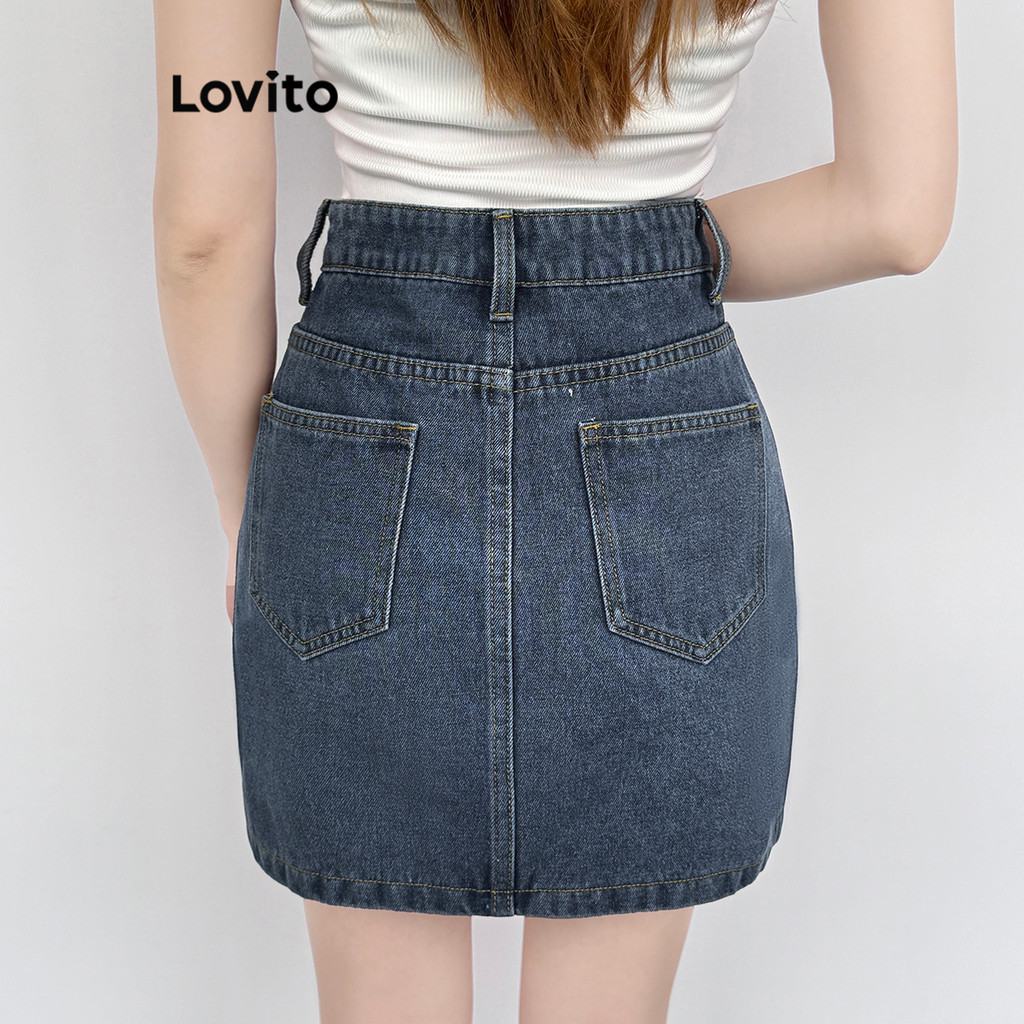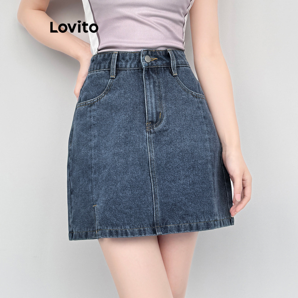 Lovito Saias Jeans Casuais Saia Jeans Lavada Lisa Para Mulheres L100MD522