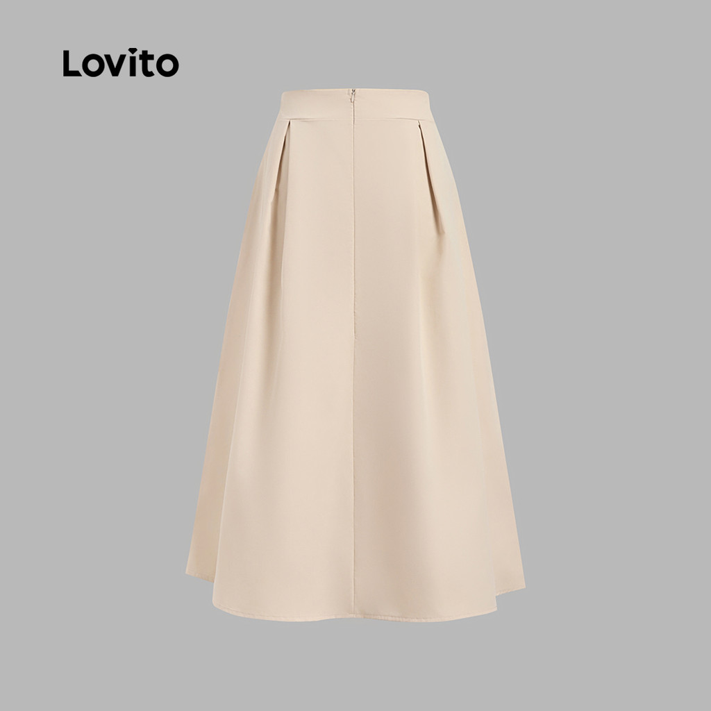 Lovito Saias Cáqui Leves Casuais Plissadas Verão Primavera Para Mulheres LBL25247