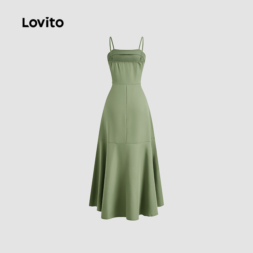 (Trendy) Lovito Vestido elegante com babados e bainha lisa com zíper para mulheres L128ED767