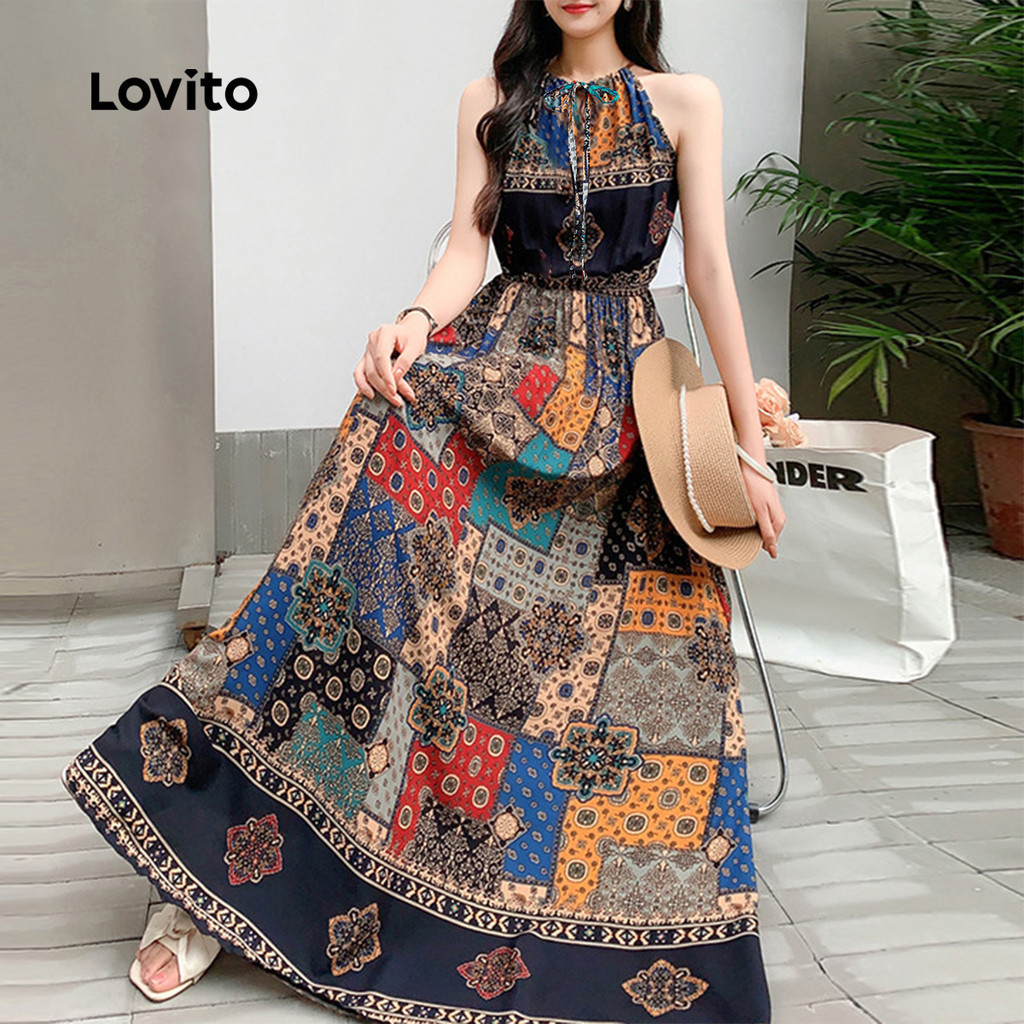 Lovito Vestido Boho Com Estampa Étnica Para Primavera/verão - Ideal Para Mulheres L143ED644