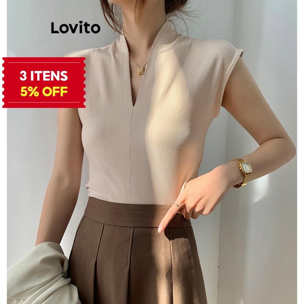(Trendy) Lovito Camiseta Básica Lisa Casual Para Mulheres L83EN251 (Multicolorido)