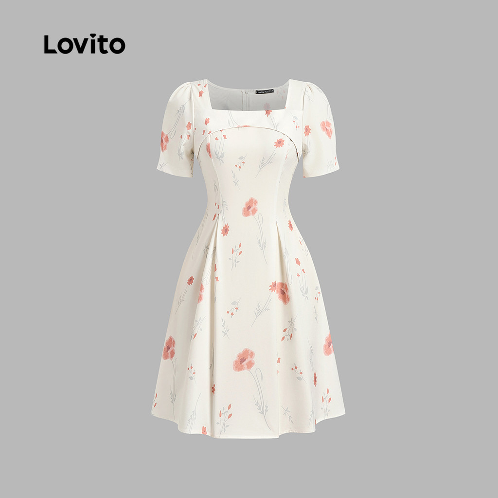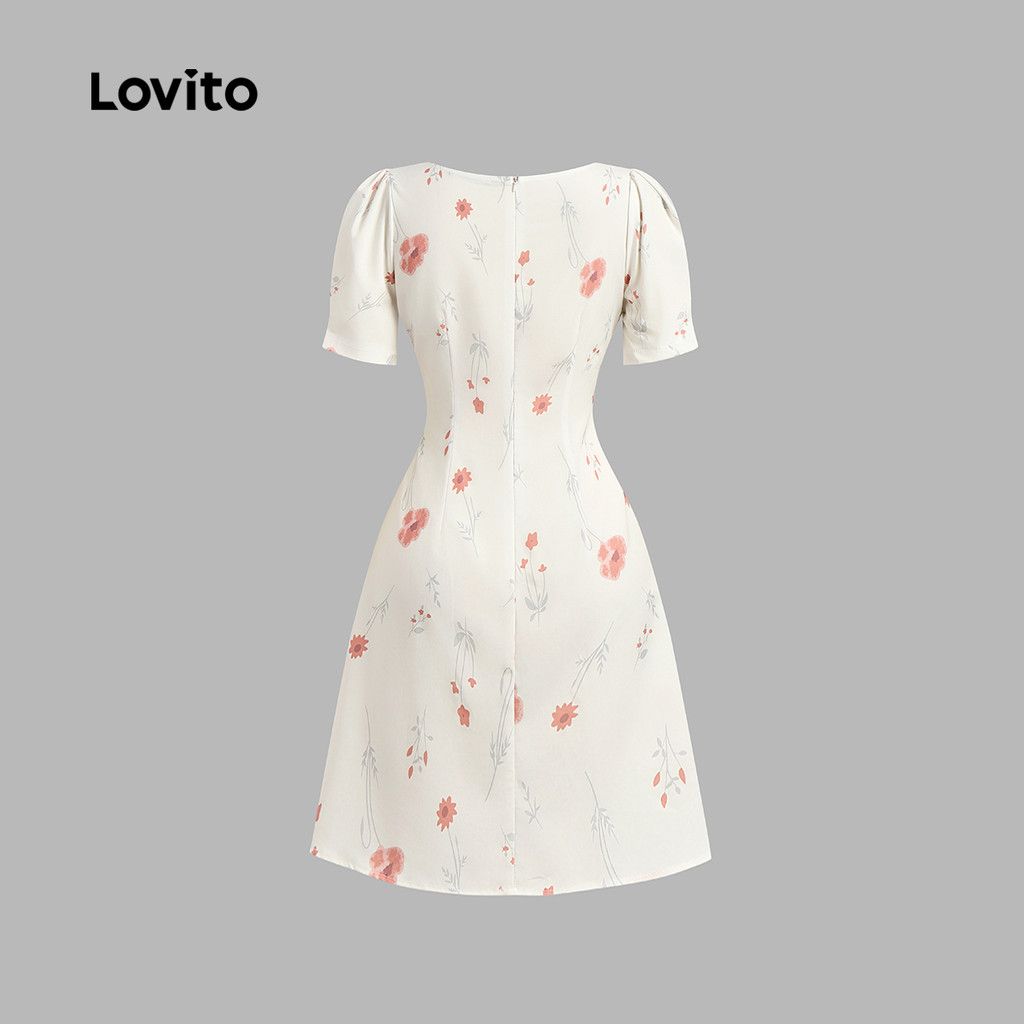 Lovito Vestido Romântico Plissado Com Zíper Primavera/verão Vestido Off White Para Mulheres L134ED671