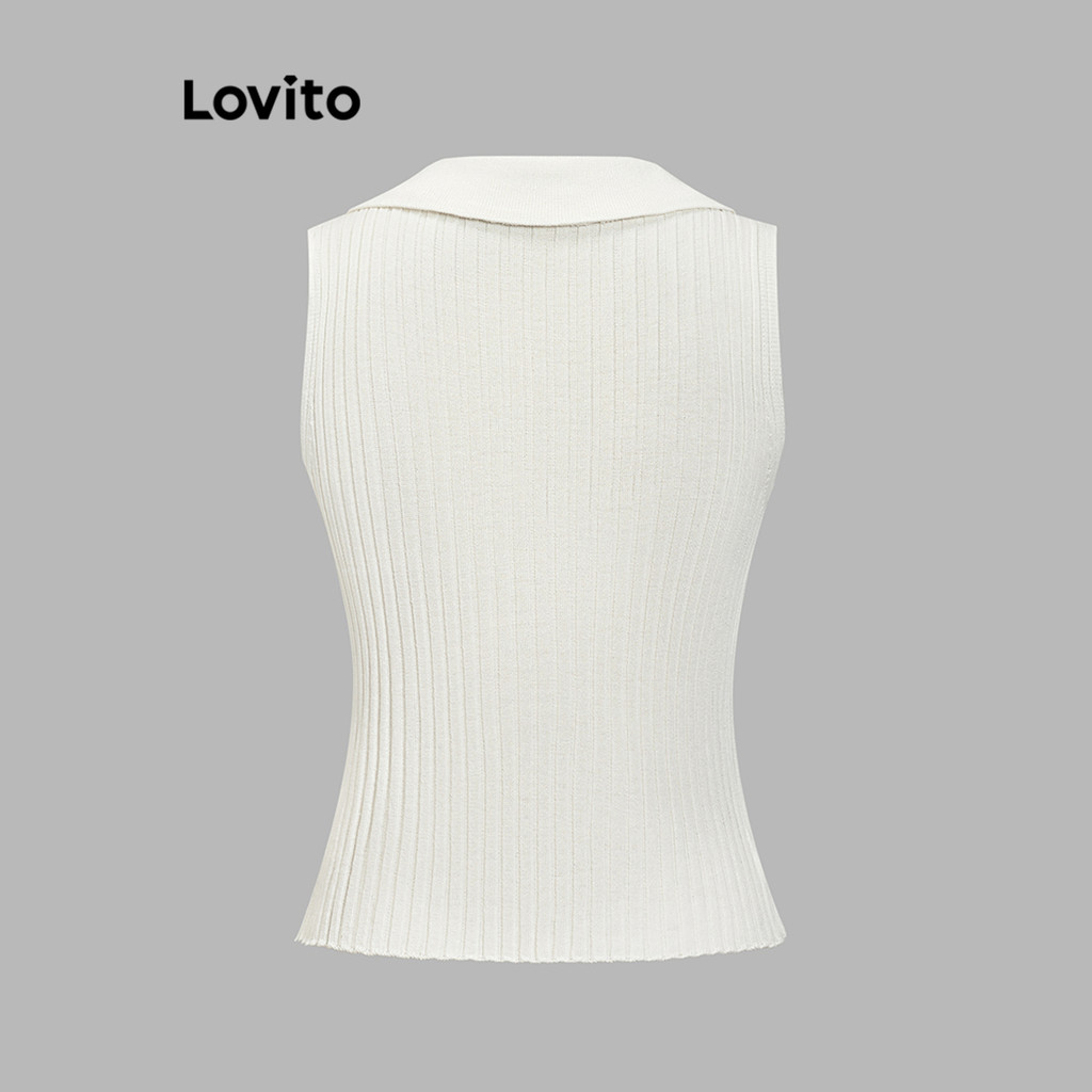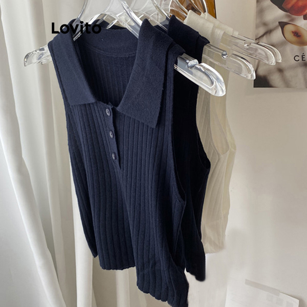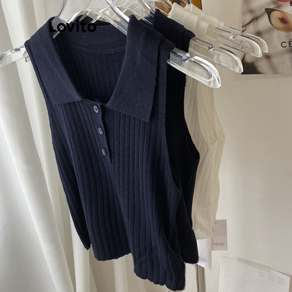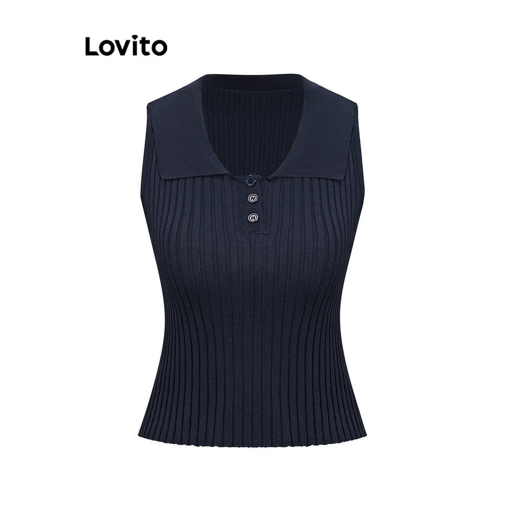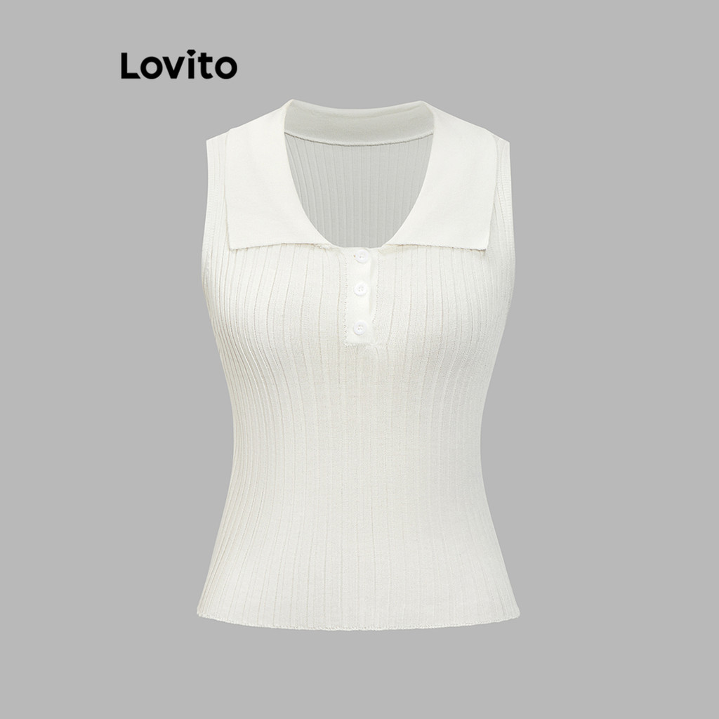 Lovito Top casual de malha frontal com botão liso para mulheres L87ED109\6